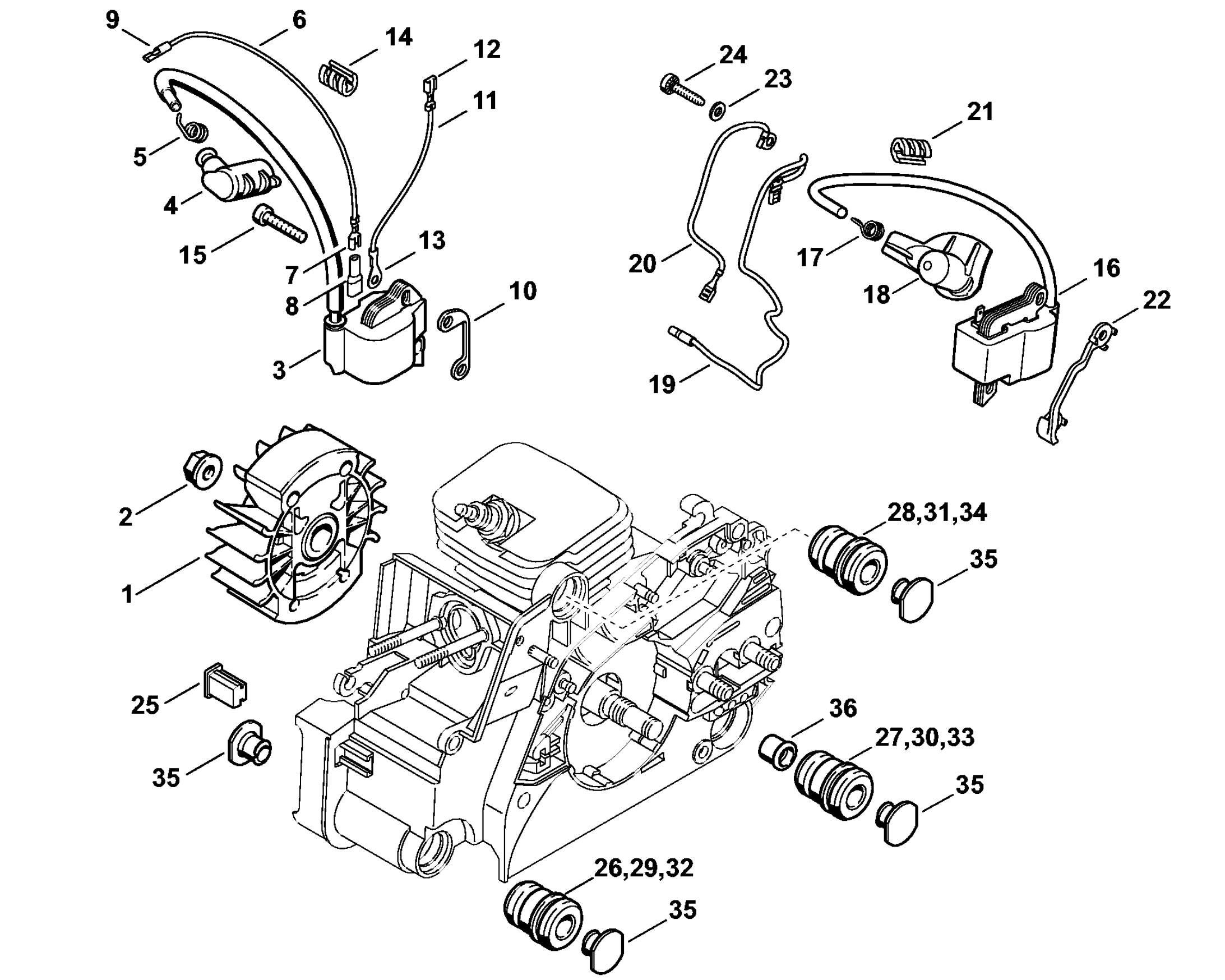 Система зажигания - Антивибрационная система Stihl MS 170, MS 170 C