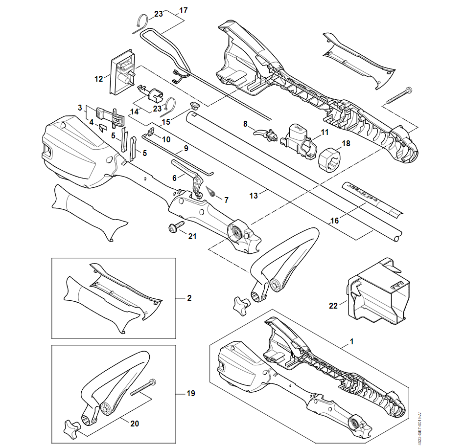 1 | Корпус рукоятки | FSA 56 | Аккумуляторный триммер STIHL | Запчасти по России | Сервисное обслуживание