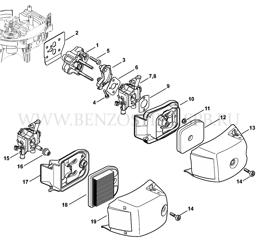 HS 82 R  Промежуточный фланец - Воздушный фильтр - Карбюратор