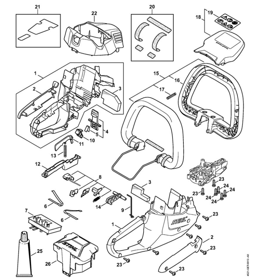 2 | Передача- Электродвигатель- Режущее устройство | HSA 56 | Аккумуляторные ножницы STIHL | Запчасти по России | Сервисное обслуживание