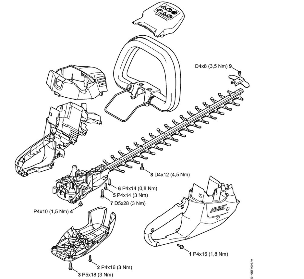5 | Момент затяжки | HSA 56 | Аккумуляторные ножницы STIHL | Запчасти по России | Сервисное обслуживание