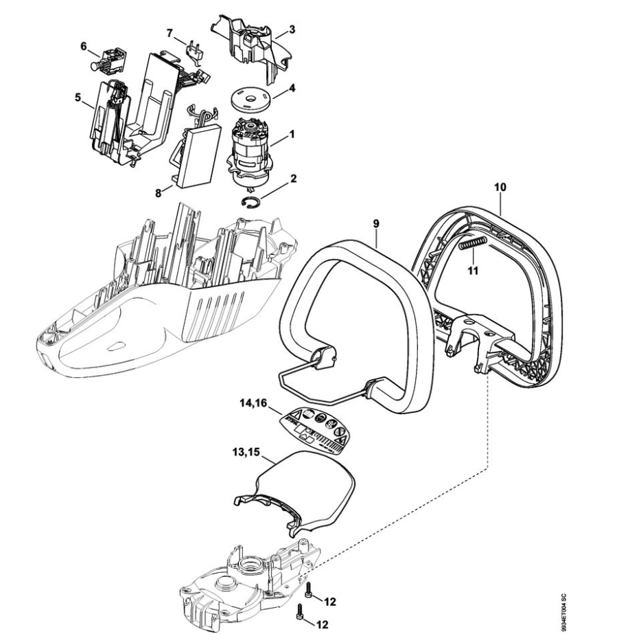 2 | Электродвигатель - Электронный модуль, Переключающий хомутик | HSA 86 | Аккумуляторные ножницы STIHL | Запчасти по России | Сервисное обслуживание
