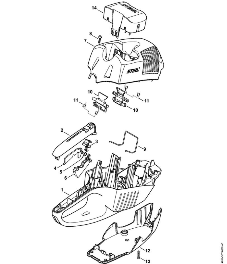 1 | Корпус рукоятки - Защитное прикрытие | HSA 86 | Аккумуляторные ножницы STIHL | Запчасти по России | Сервисное обслуживание