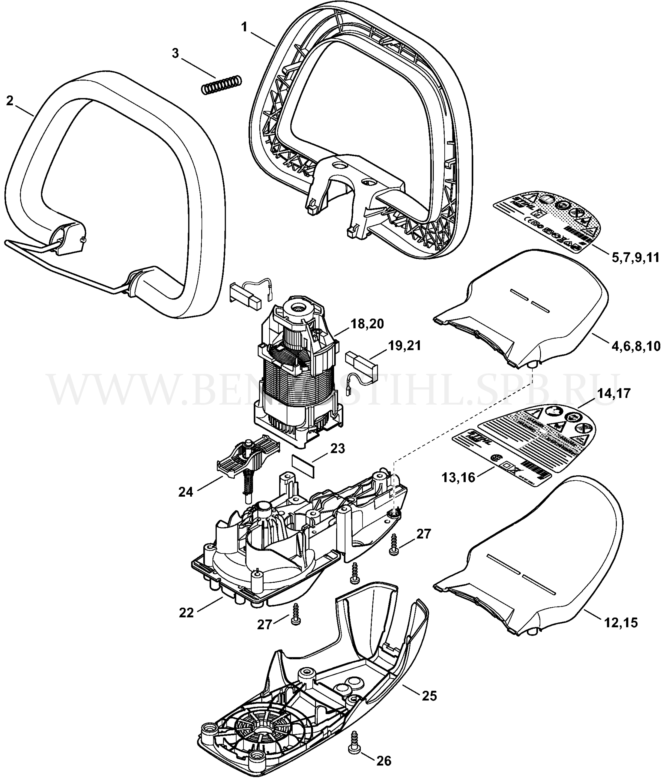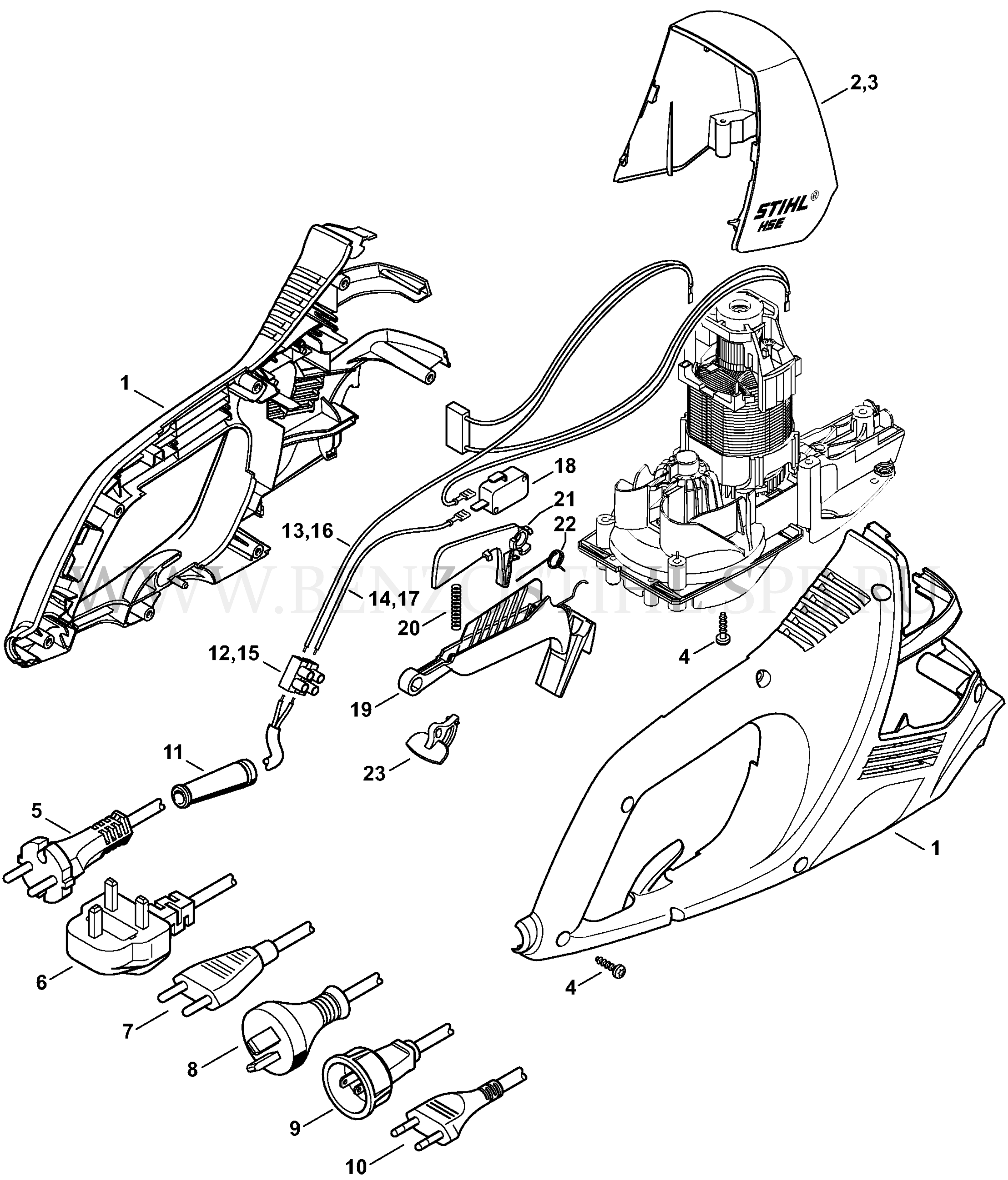 HSE 42 Рукоятка с хомутиком, Электродвигатель, Корпус передачи