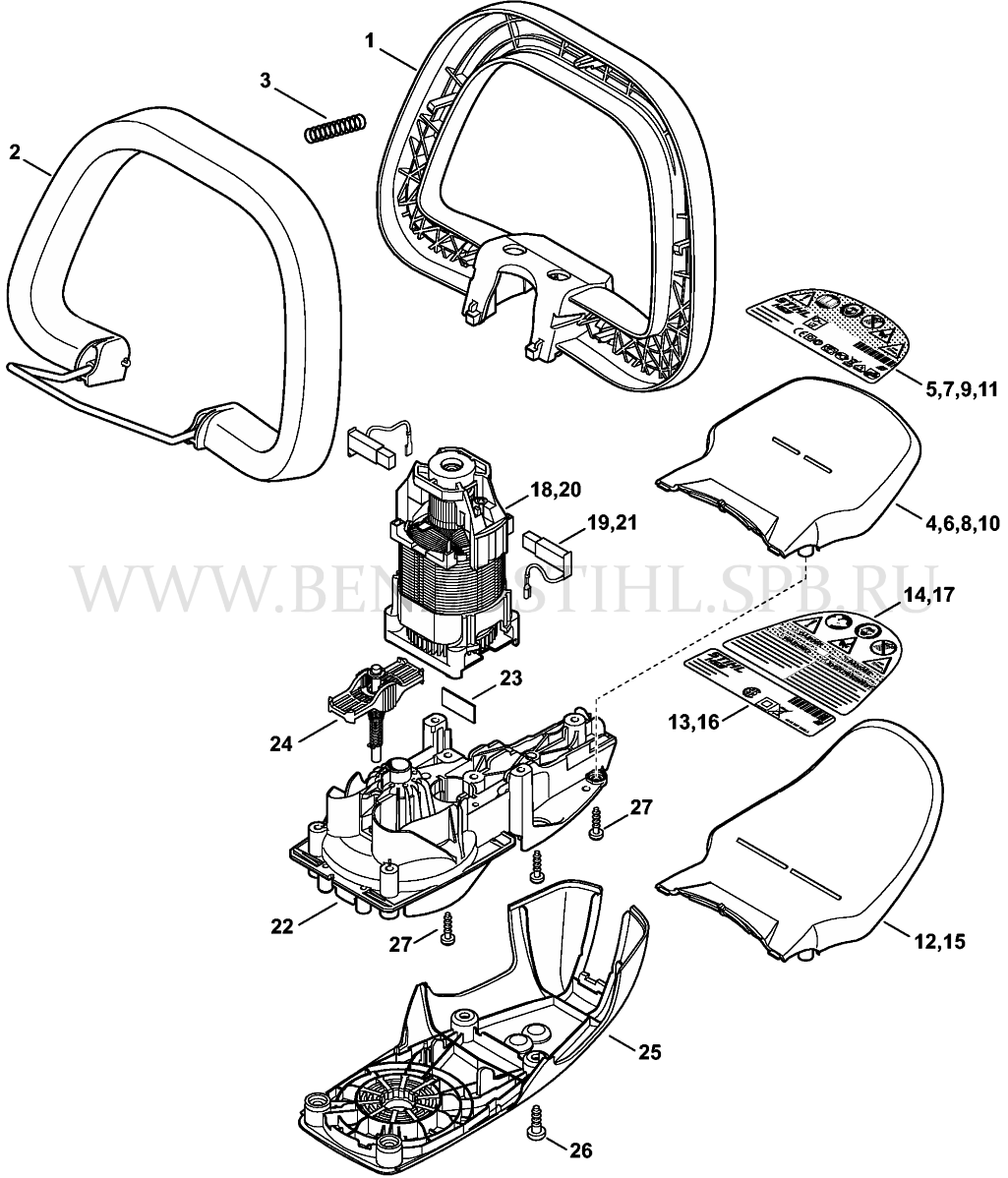 HSE 42  Рукоятка с хомутиком, Электродвигатель, Корпус передачи