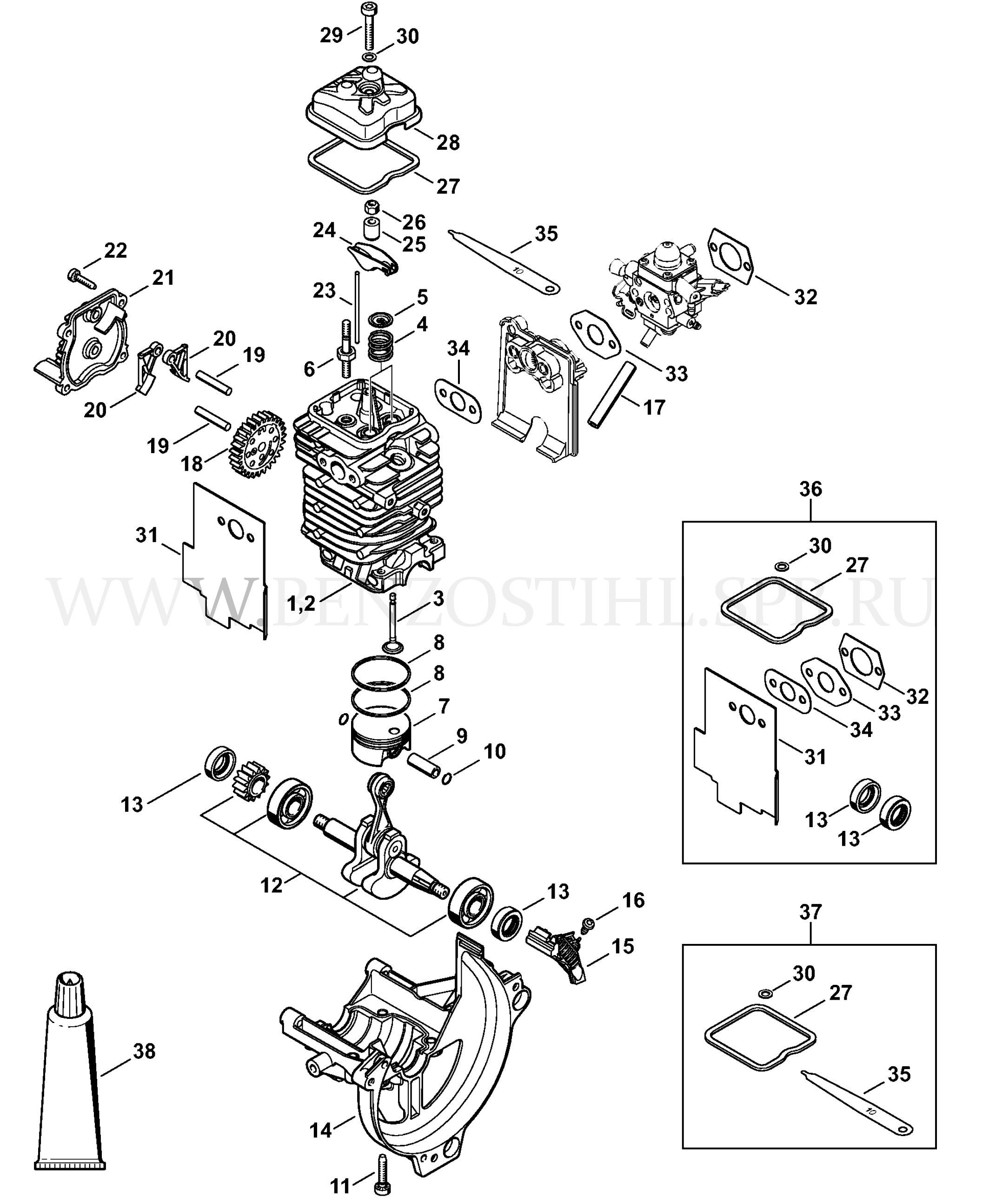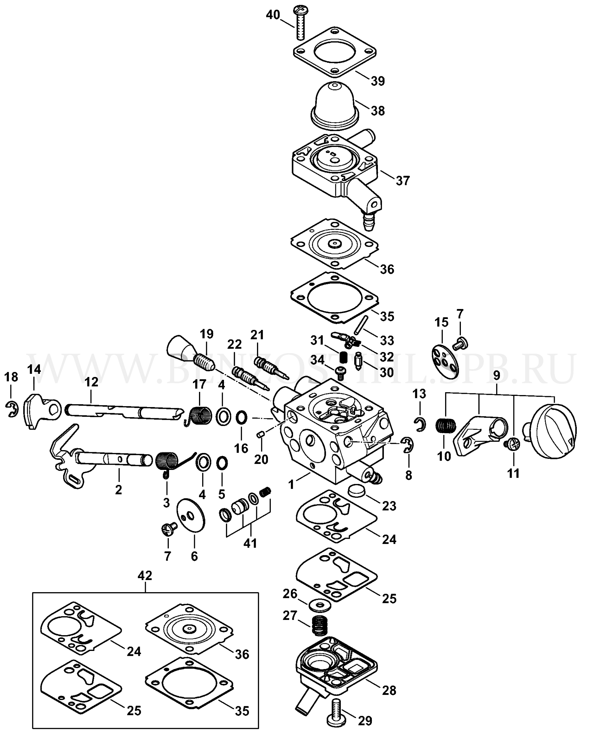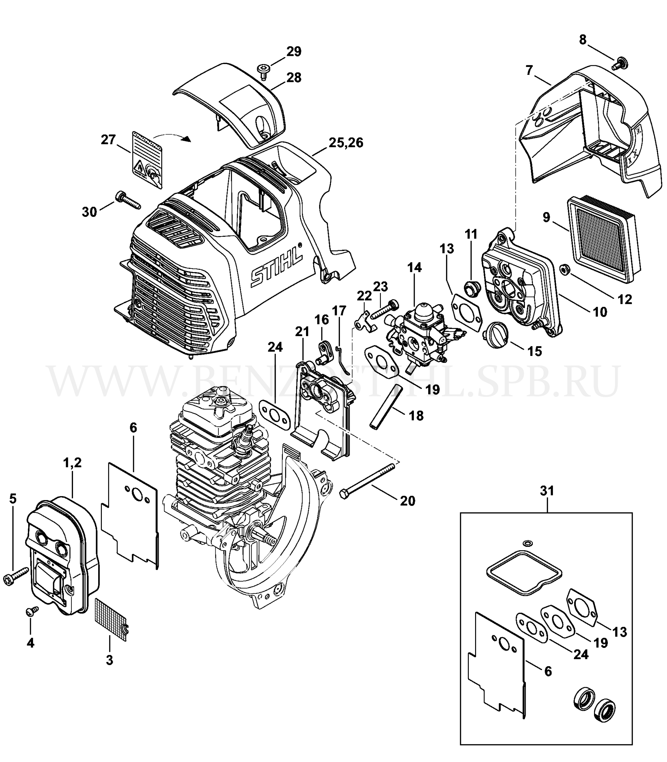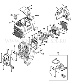 HT 133 Глушитель - Воздушный фильтр - Карбюратор