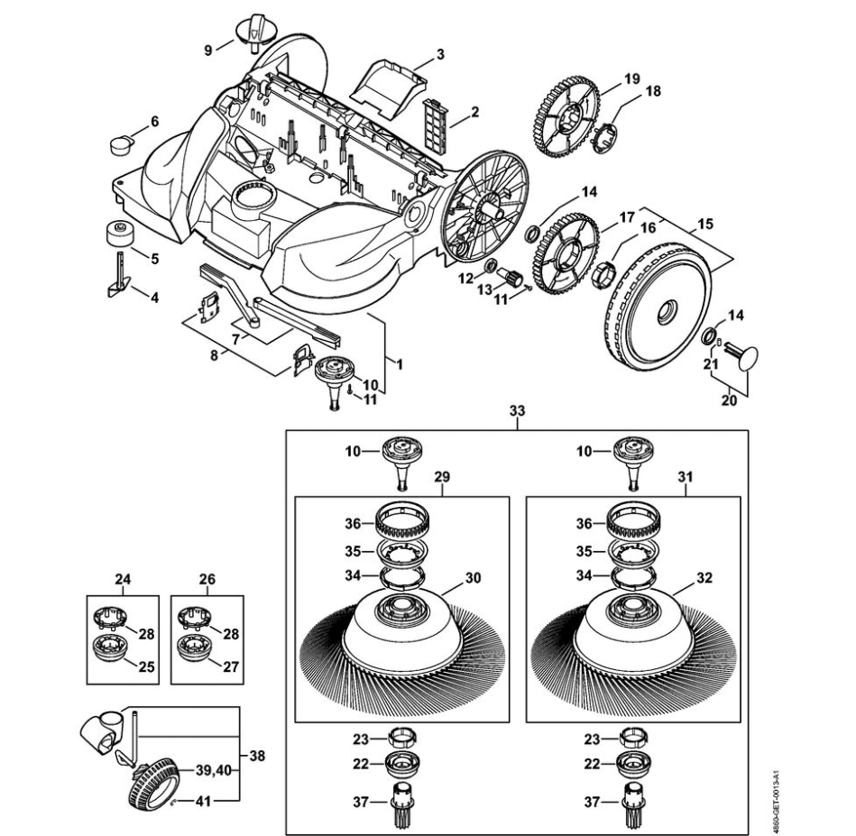 1 | Рама, Тарельчатая щётка | KGA 770 | Аккумуляторная подметальная STIHL | Запчасти по России | Сервисное обслуживание