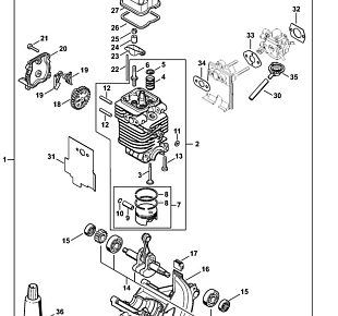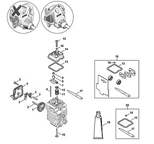 1 | Цилиндр | KM 100 R | Комбидвигатель STIHL | Запчасти по России | Сервисное обслуживание