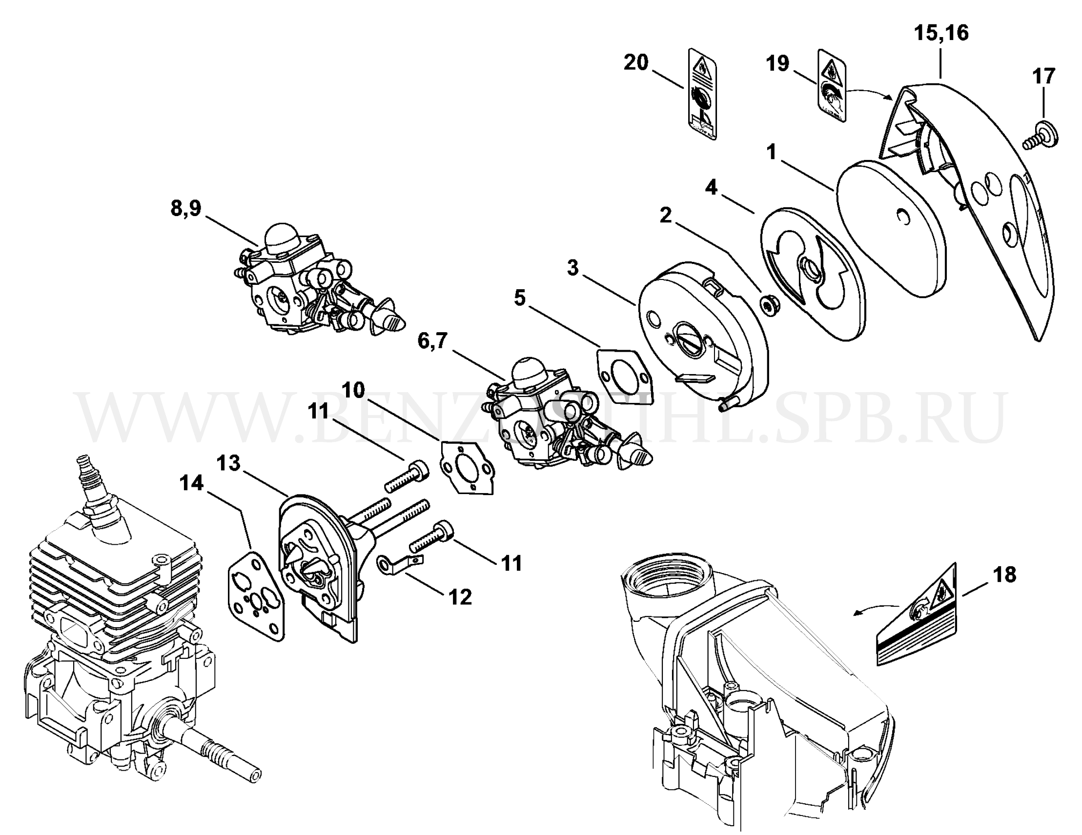 KM 56 RC Воздушный фильтр - Промежуточный фланец - Карбюратор