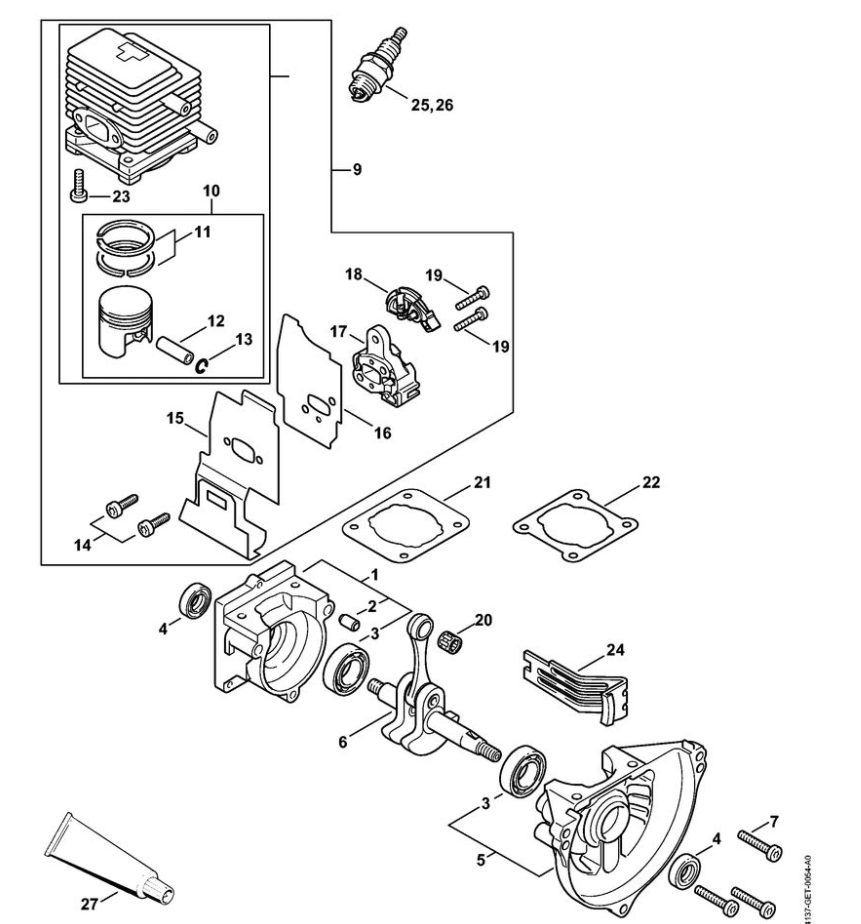 1 | Картер - Цилиндр | KM 85 R | Комбидвигатель STIHL | Запчасти по России | Сервисное обслуживание