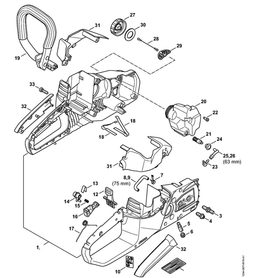 1 | Корпус рукоятки - Кожух | MSA 120 C-B |Аккумуляторная пила STIHL | Запчасти по России | Сервисное обслуживание