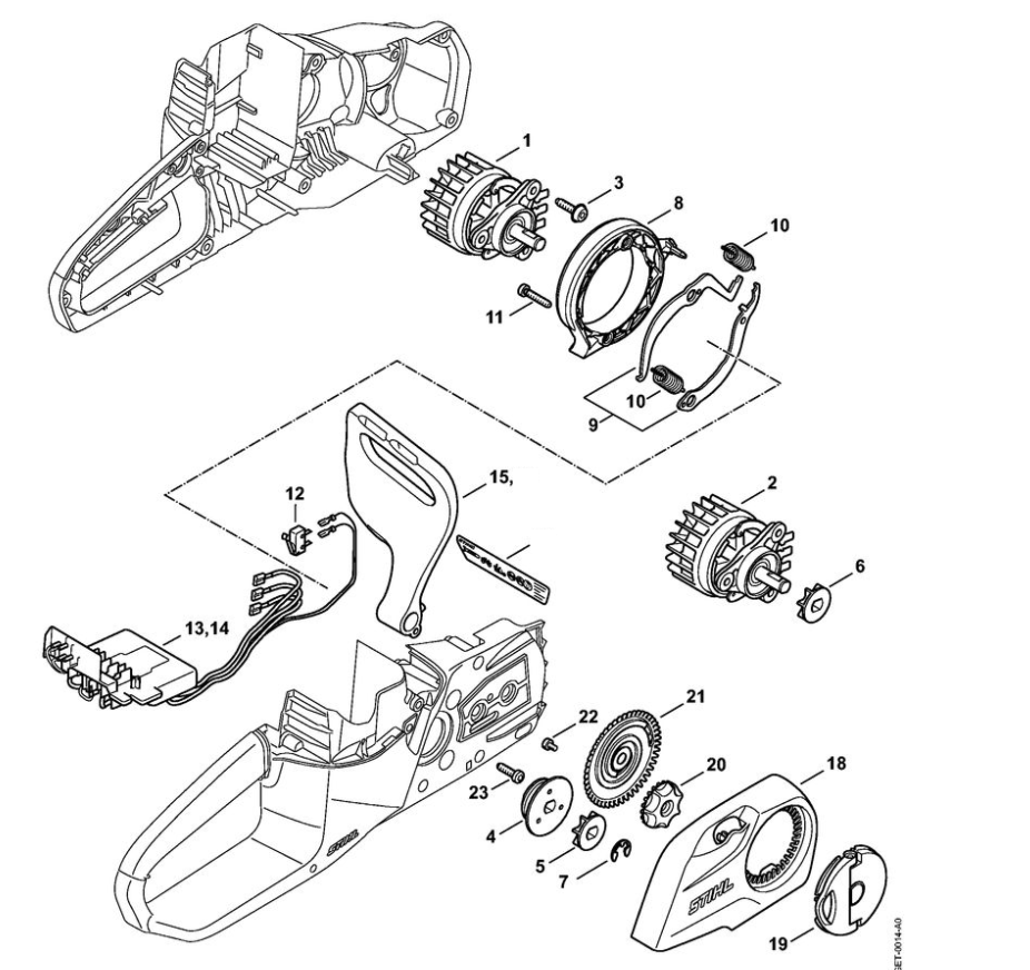 2 | Электродвигатель - Электронный модуль - Крышка цепной звёздочки | MSA 120 C-B |Аккумуляторная пила STIHL | Запчасти по России | Сервисное обслуживание