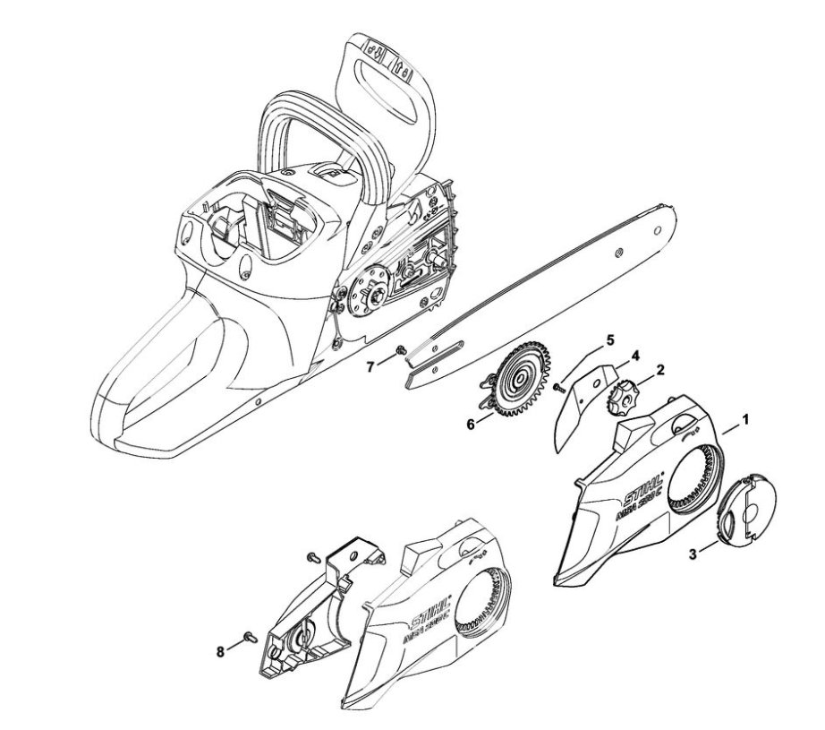 3 | Устройство для защиты рук - Тормоз пильной цепи | MSA 200 C-B |Аккумуляторная пила STIHL | Запчасти по России | Сервисное обслуживание
