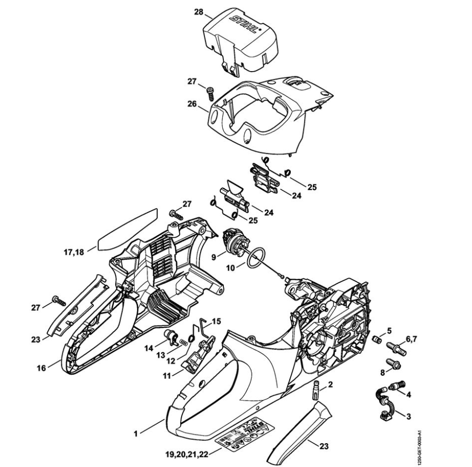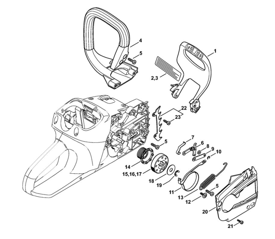 1 | Корпус рукоятки - Кожух | MSA 200 C-B |Аккумуляторная пила STIHL | Запчасти по России | Сервисное обслуживание
