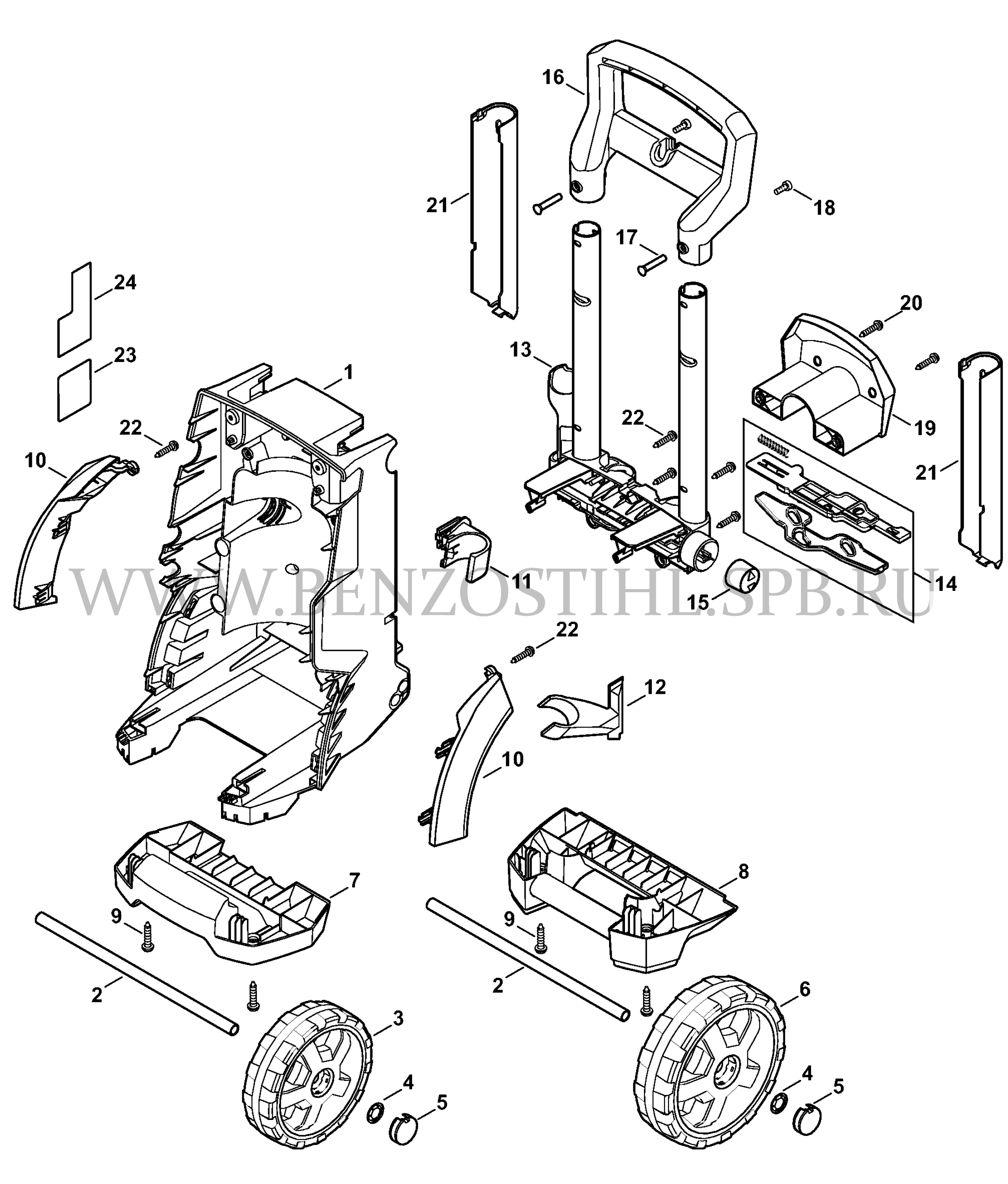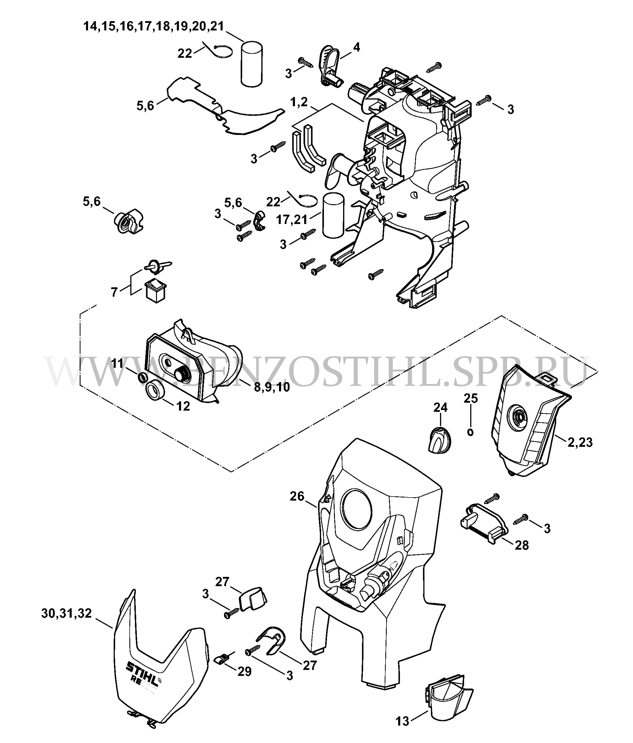 Электрические мойки высокого давления (Stihl) RE 109 Корпус, Защитный колпак, Корпус выключателя
