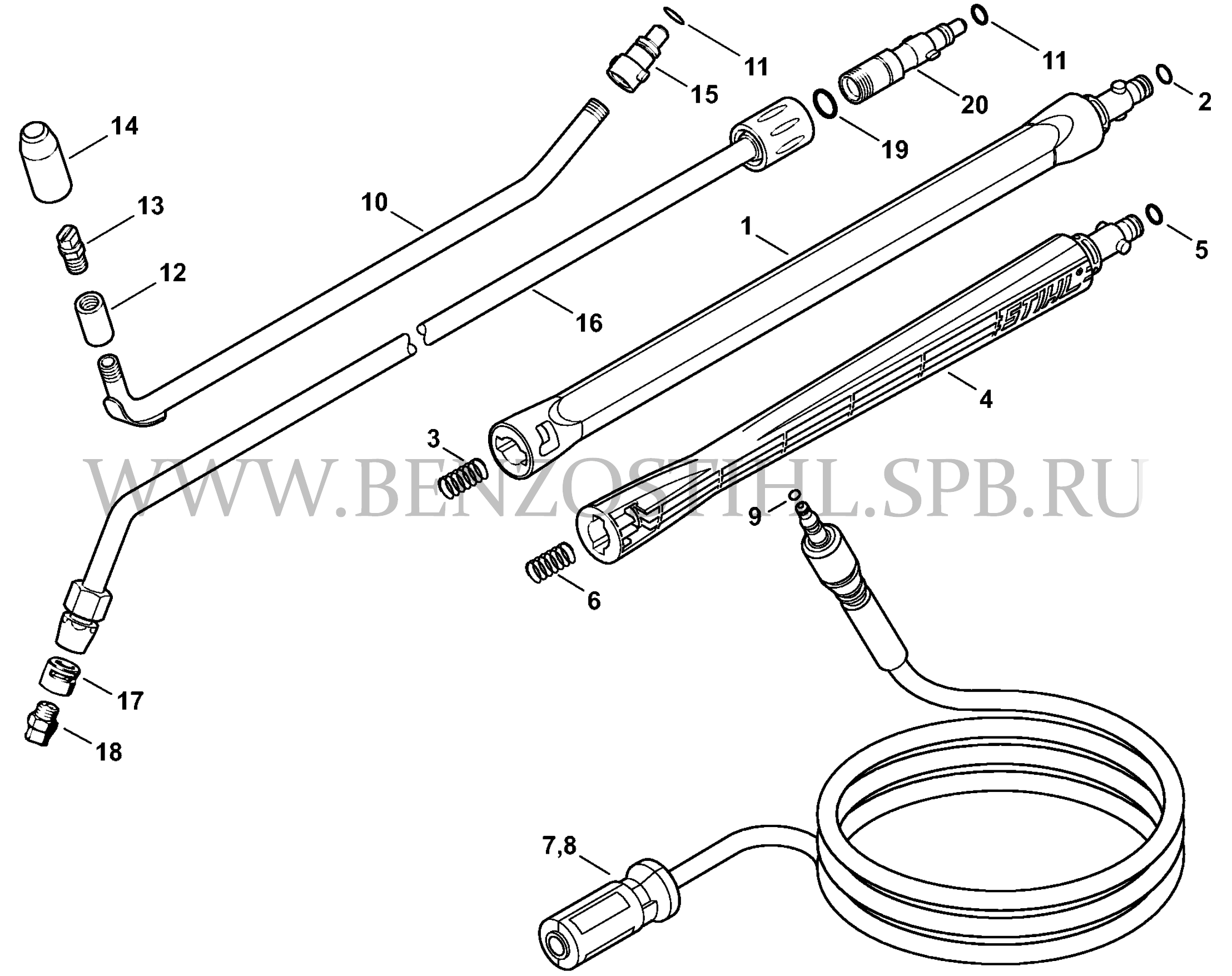 Электрические мойки высокого давления (Stihl) RE 109 Пистолет-распылитель - Стальная трубка