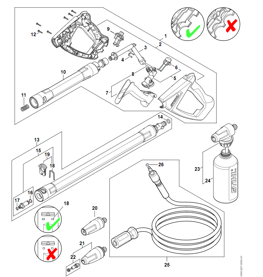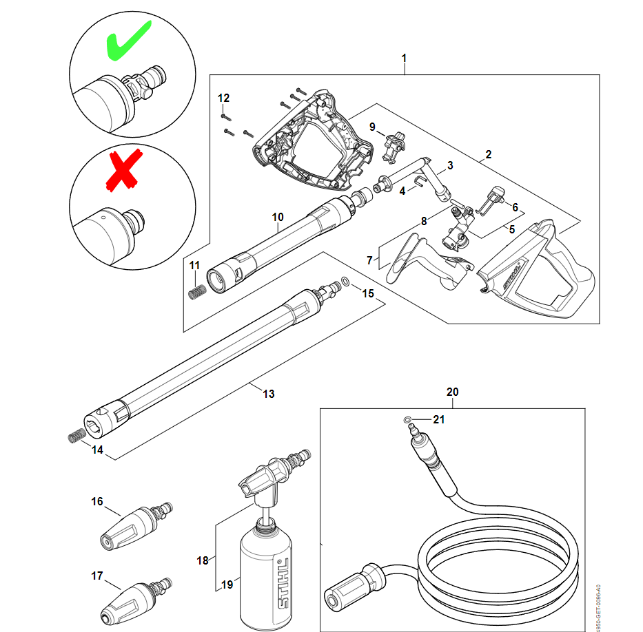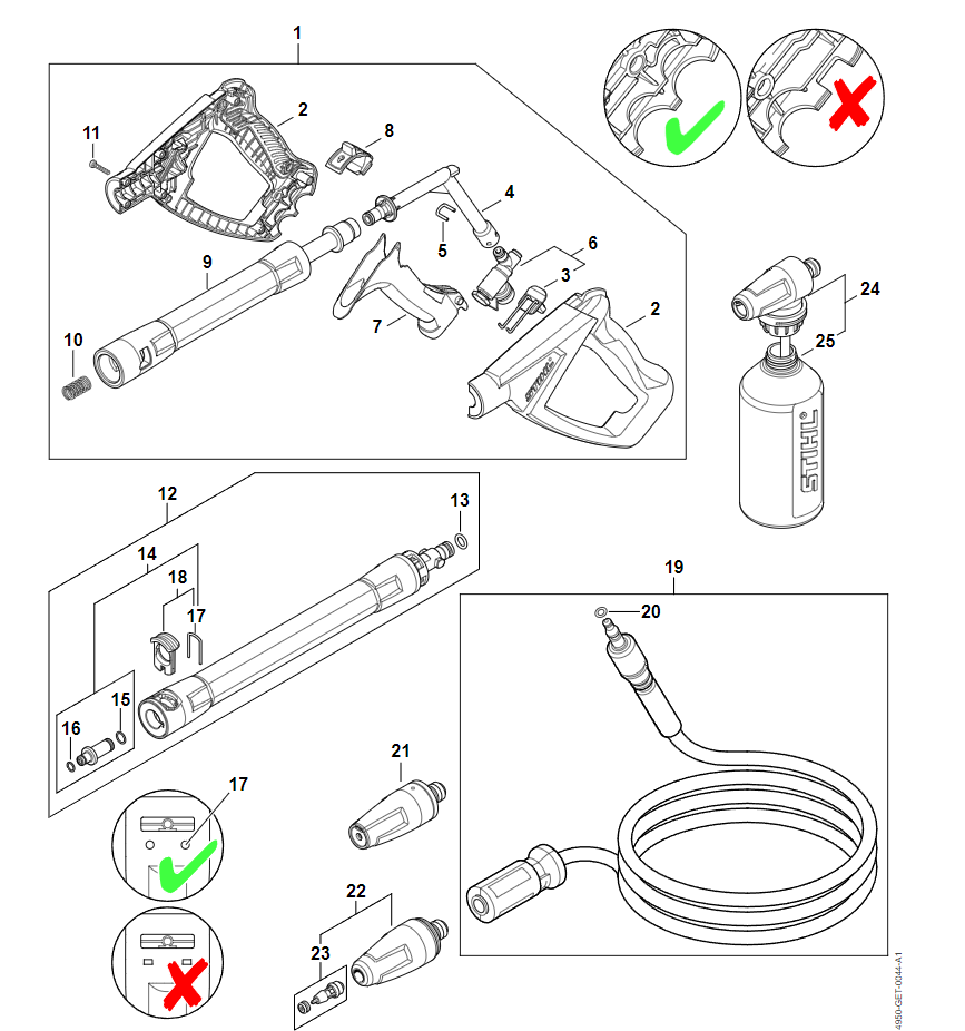 9 | Пистолет-распылитель - Струйная трубка | RE 120 | Мойка высокого давления STIHL | Запчасти по России | Сервисное обслуживание