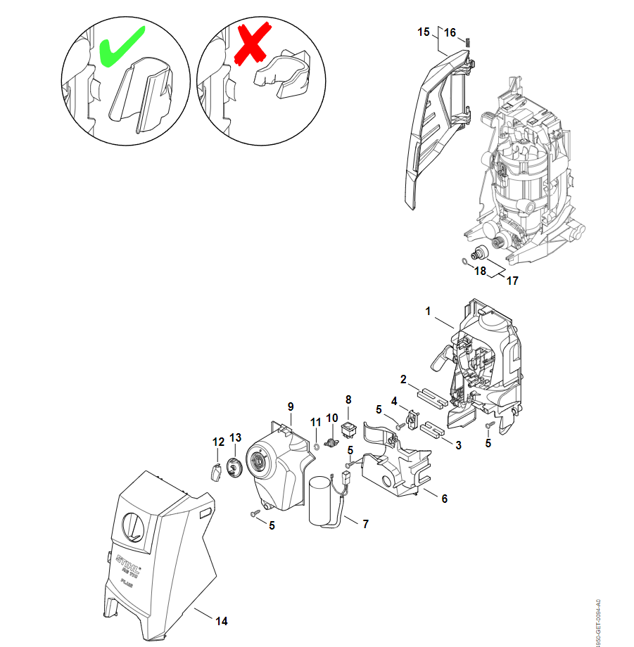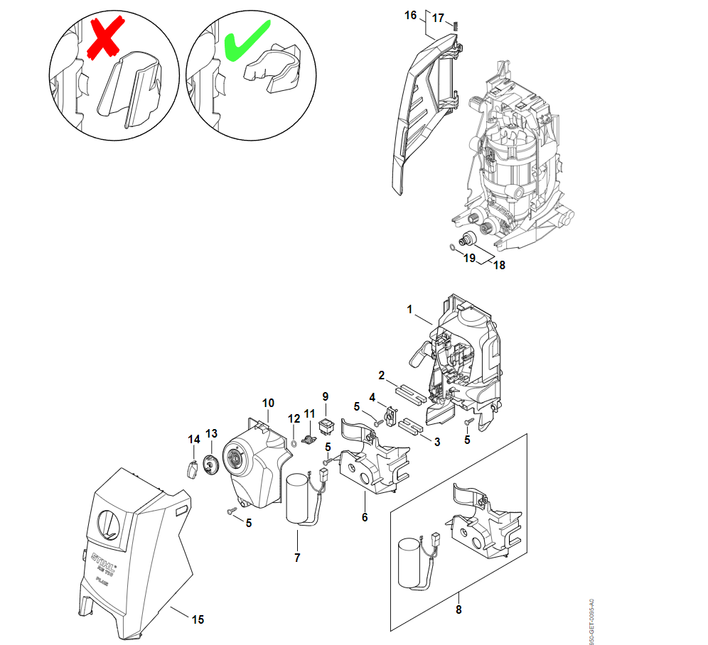 8 | Воздухопровод, Защитный колпак, Корпус выключателя | RE 120 | Мойка высокого давления STIHL | Запчасти по России | Сервисное обслуживание