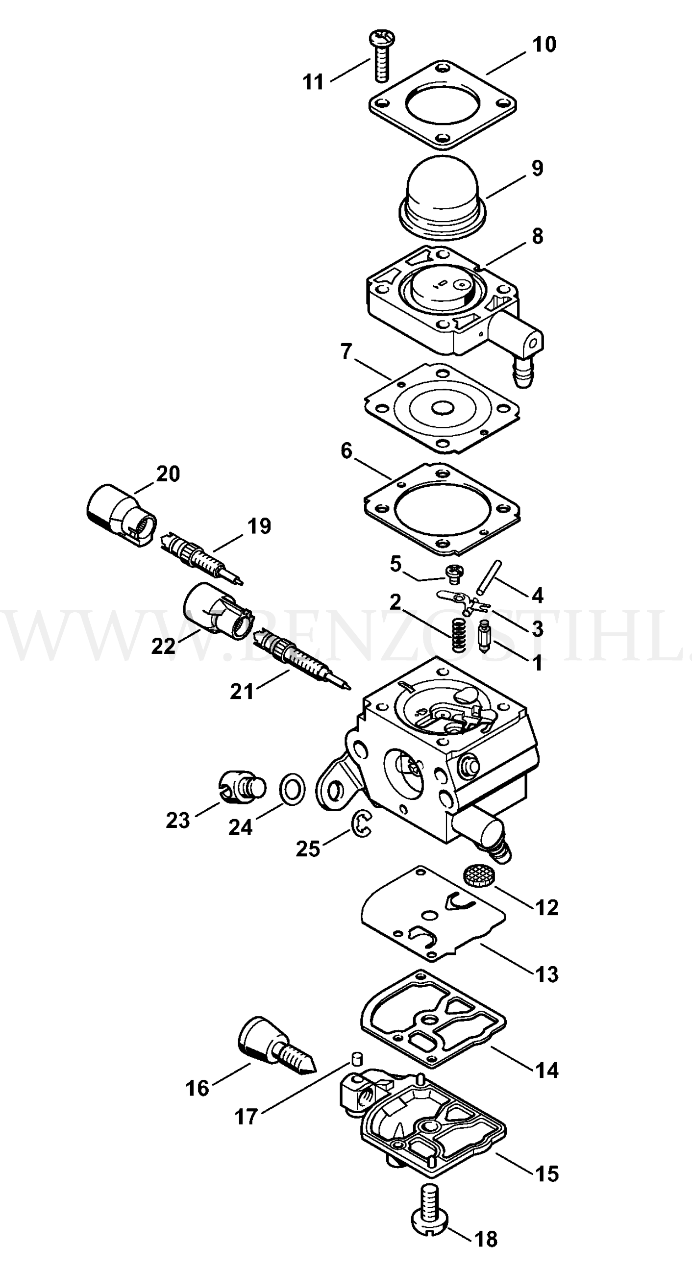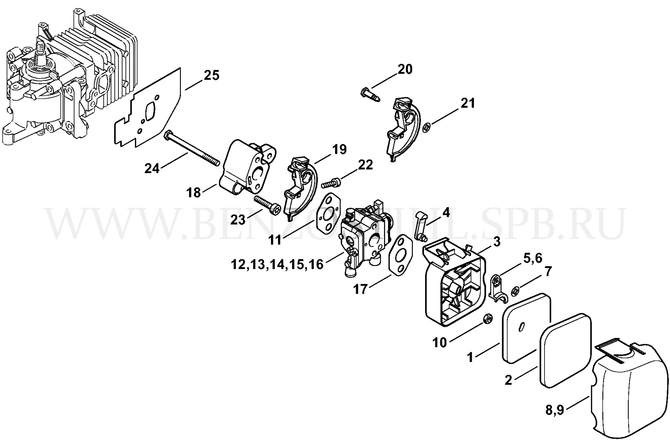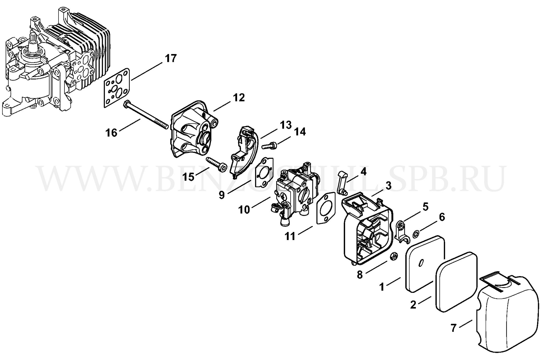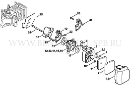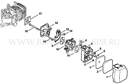 HS 45 Воздушный фильтр - Промежуточный фланец - Карбюратор