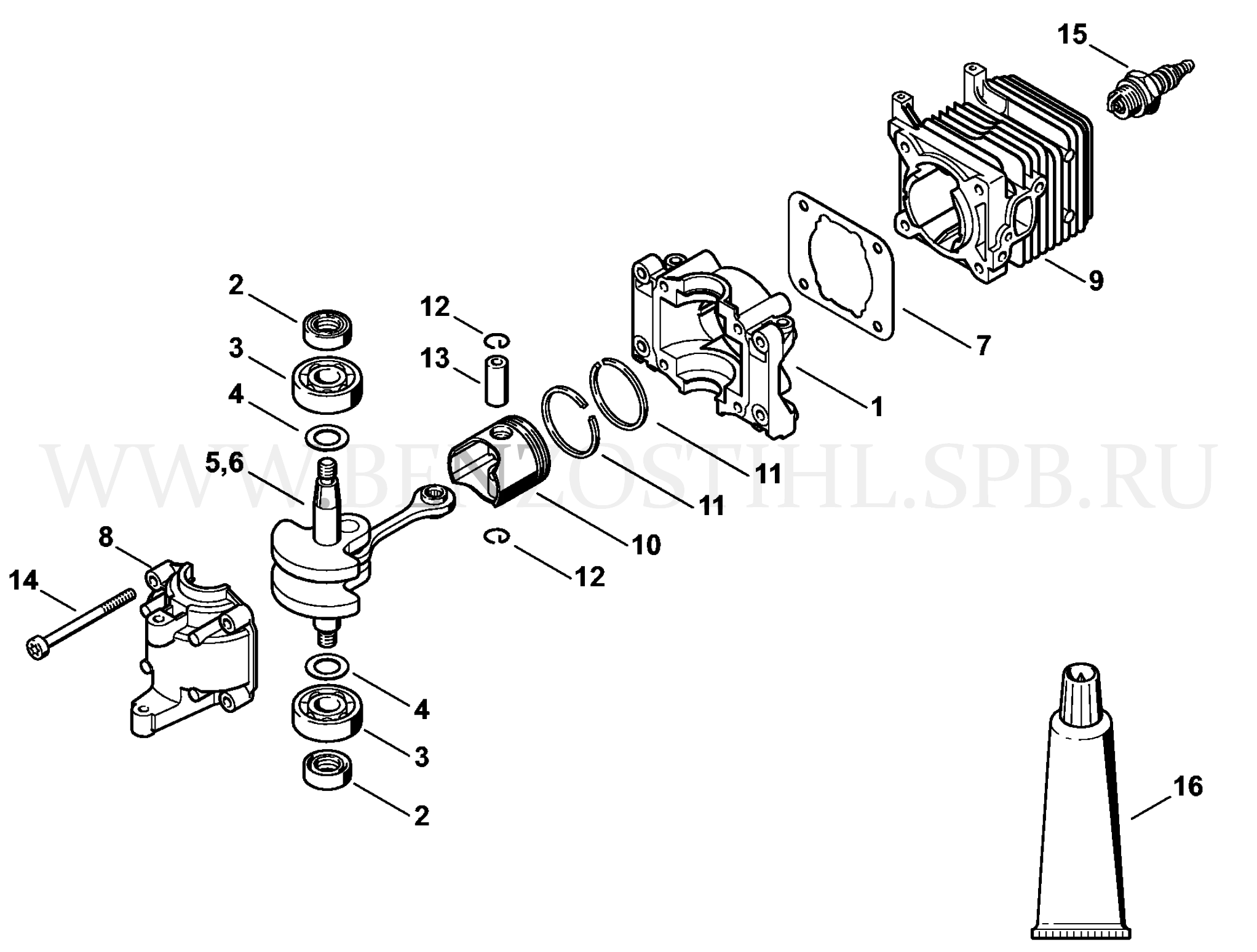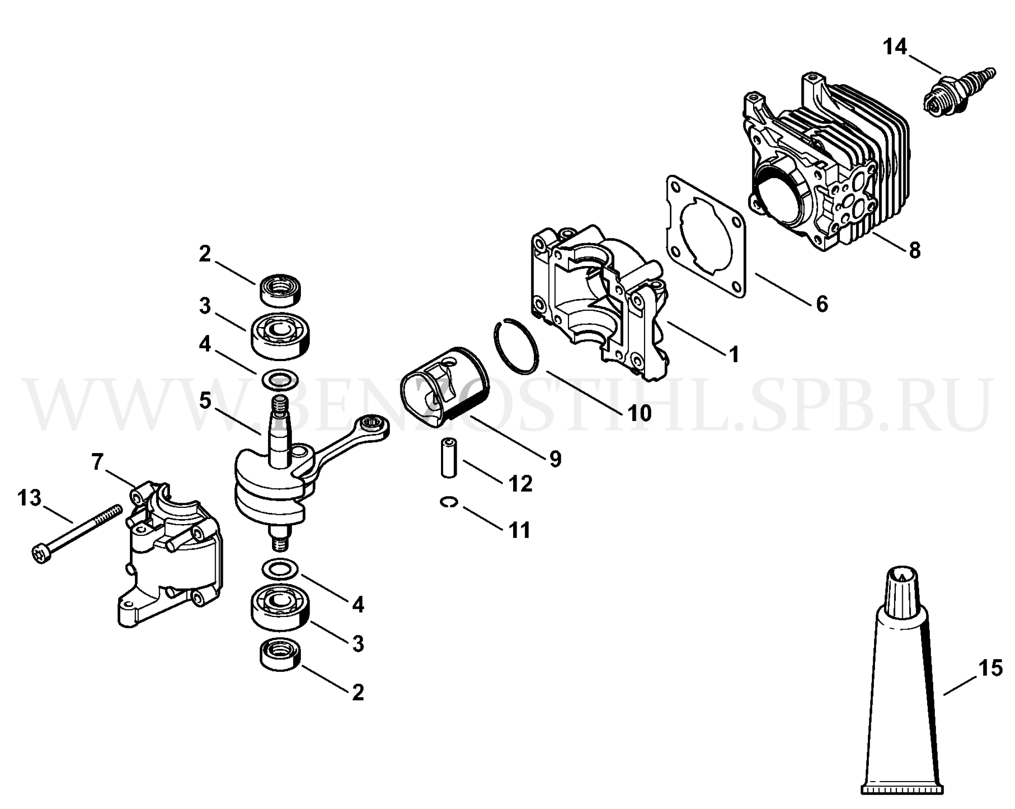 HS 45 Картер - Поршневая группа 2-MIX