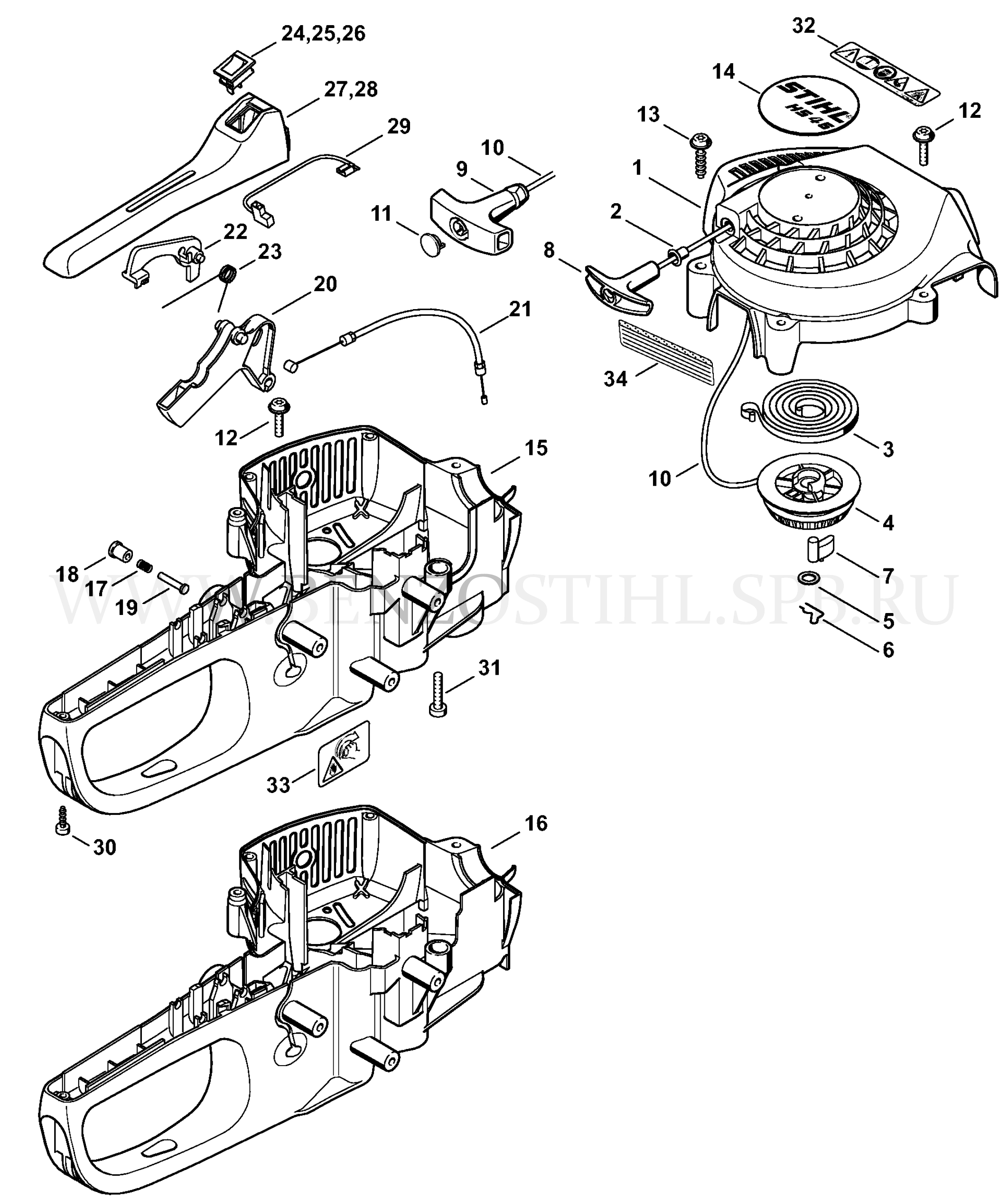HS 45 Пусковое устройство - Корпус рукоятки