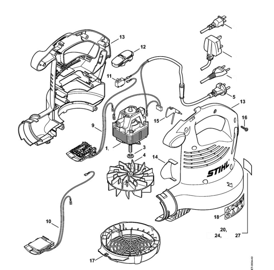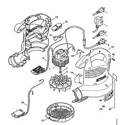 1 | SHE 71: Электродвигатель - Корпус вентилятора | SHE 71 | Воздуходув STIHL | Запчасти по России | Сервисное обслуживание