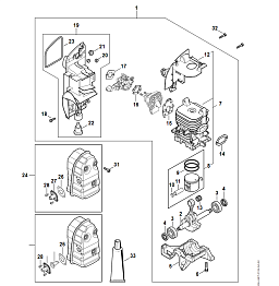 1 | Коленчатый вал - Цилиндр - Шумоглушитель | SR 430 | Опрыскиватель STIHL | Запчасти по России | Сервисное обслуживание