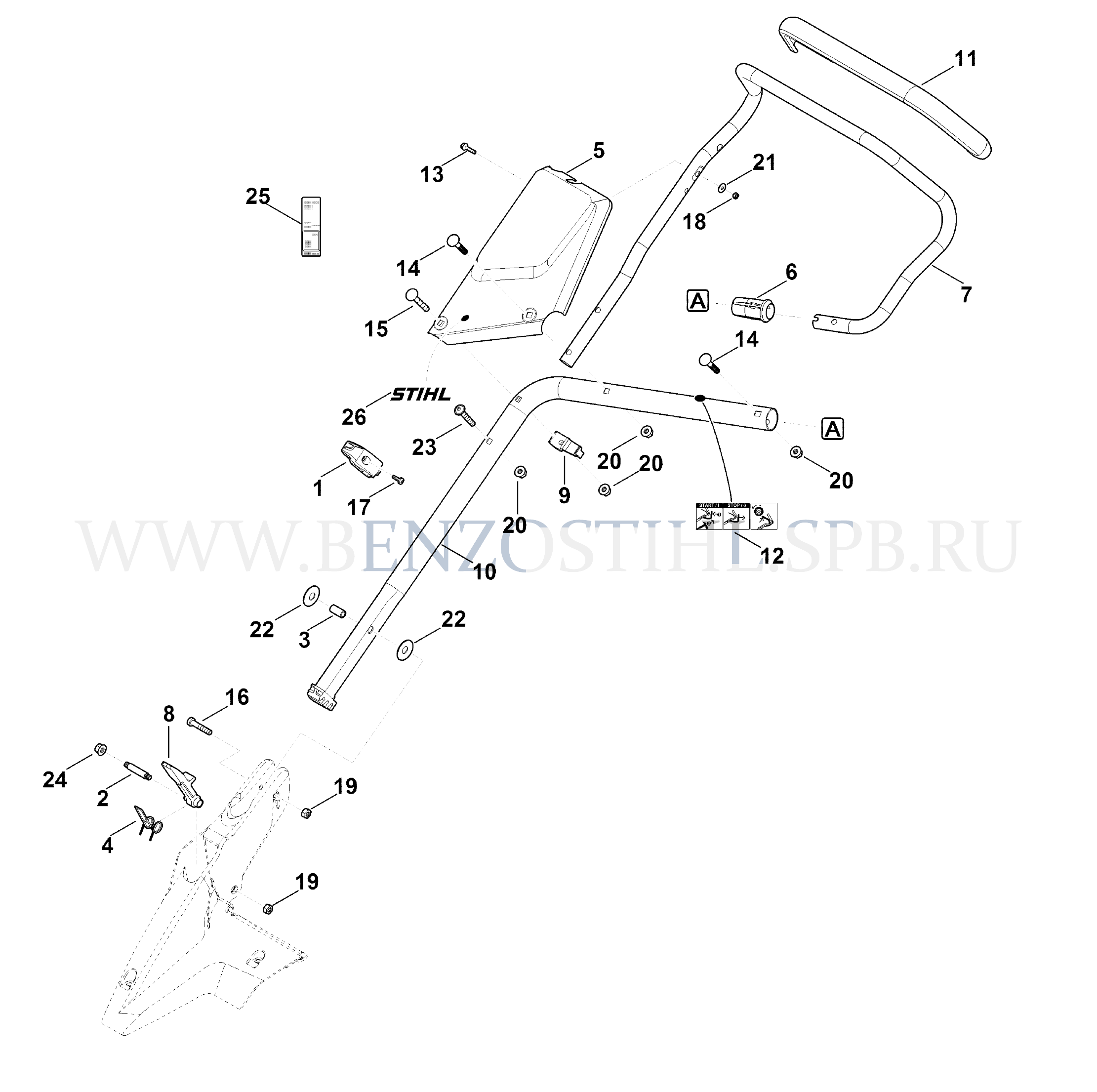 Газонокосилка (Stihl) RM 650.0 T Верхняя часть ведущей ручки