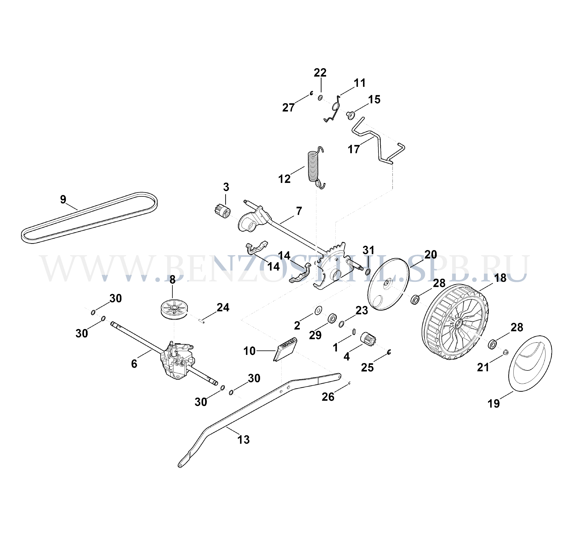 Газонокосилка (Stihl) RM 650.0 T Задняя ось, коробка передач