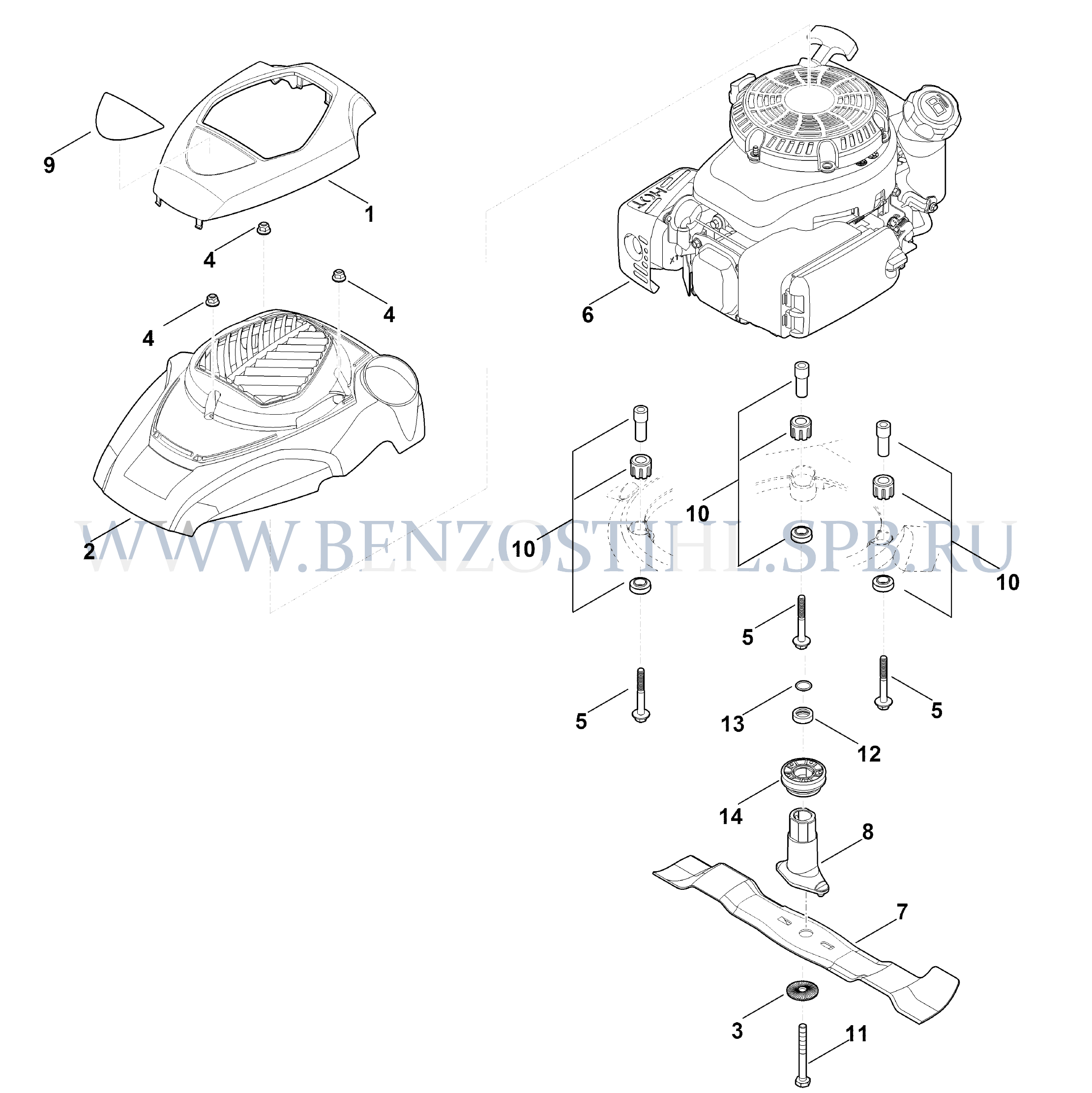 Газонокосилка (Stihl) RM 650.0 T Двигатель, нож
