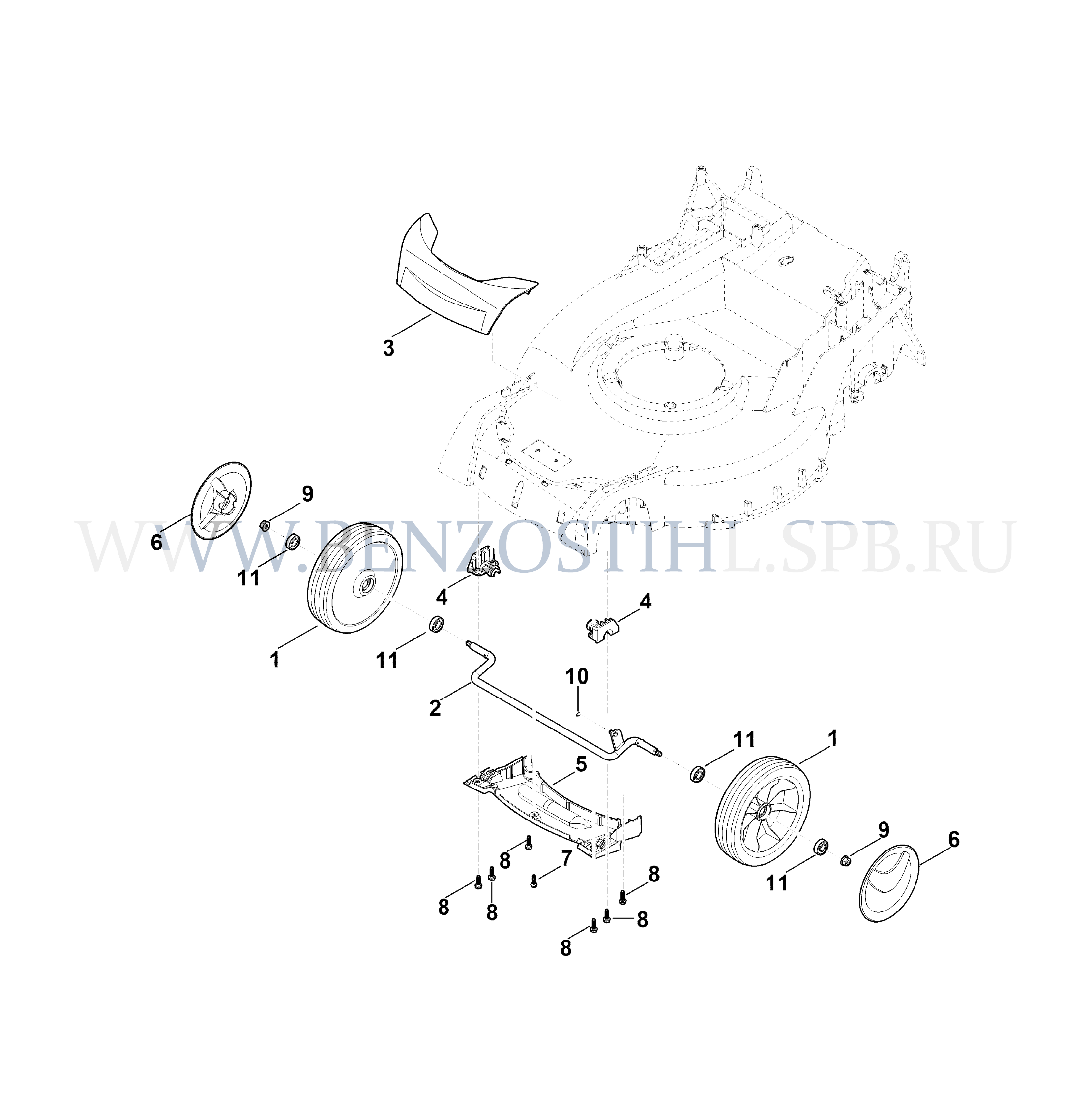 Газонокосилка (Stihl) RM 650.0 V Передняя ось, кожух