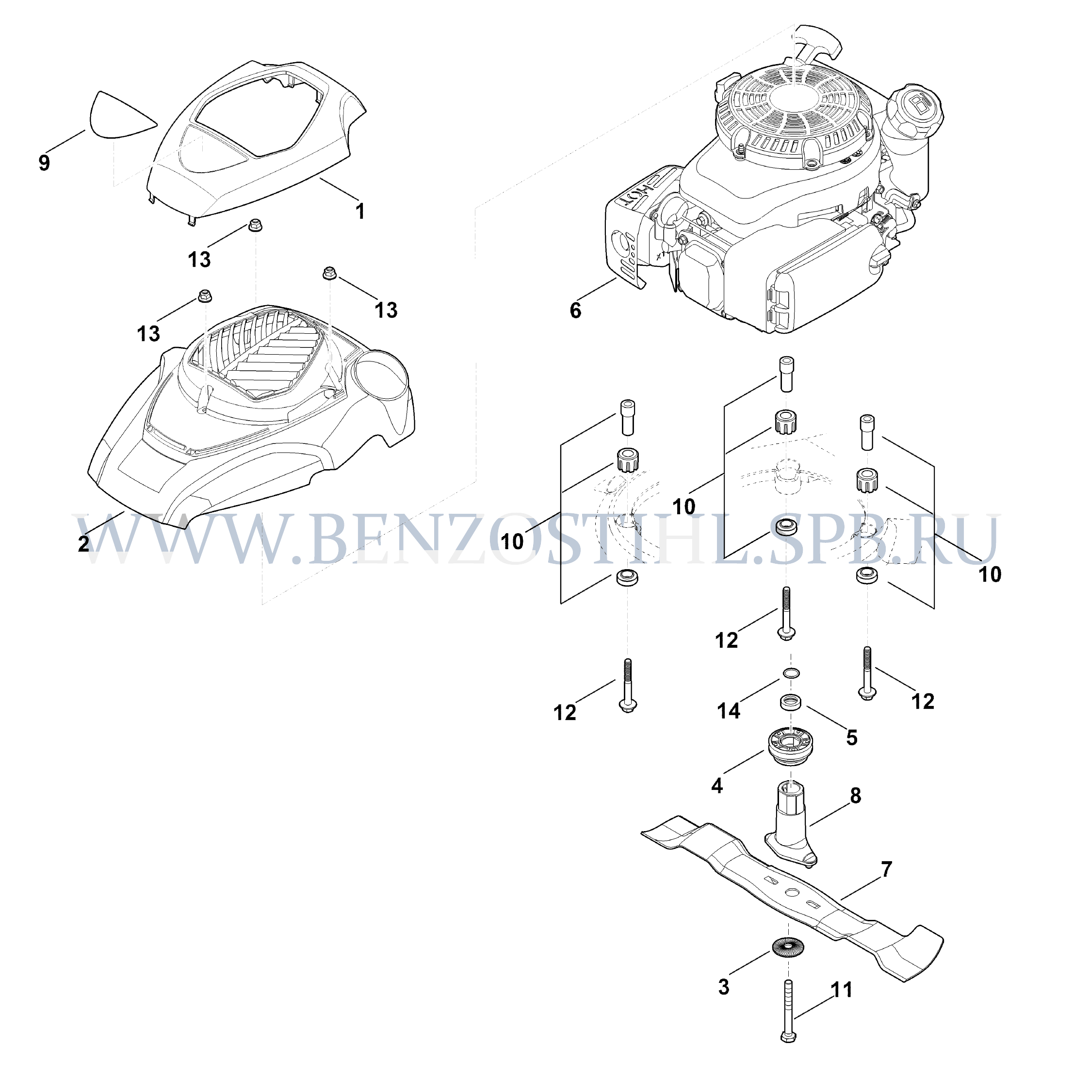 Газонокосилка (Stihl) RM 650.0 V Двигатель, нож