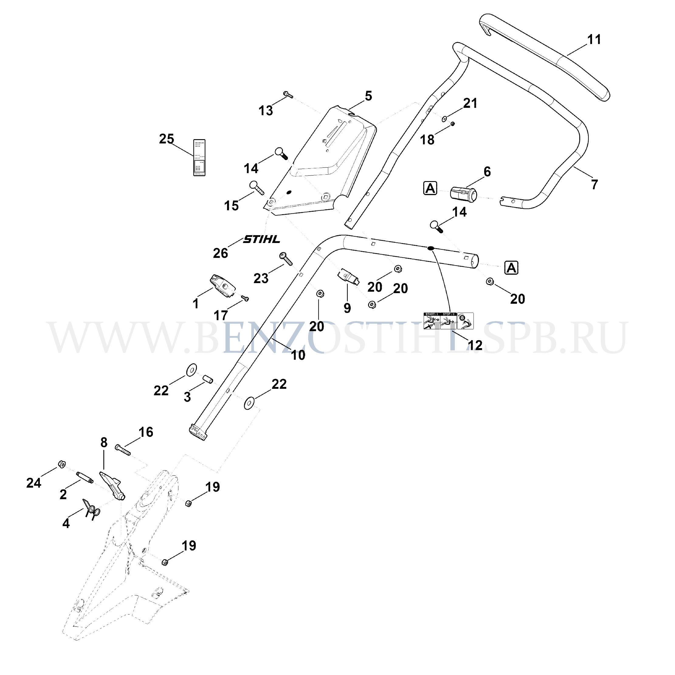 Газонокосилка (Stihl) RM 650.0 V Верхняя часть ведущей ручки