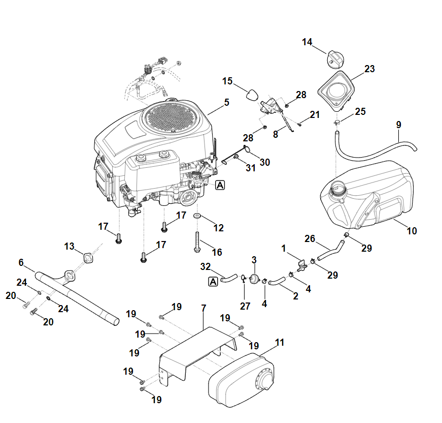 7 | G - Двигатель, бак | Минитрактор-косилка RT 4082.1 | Запчасти по России | Ремонт