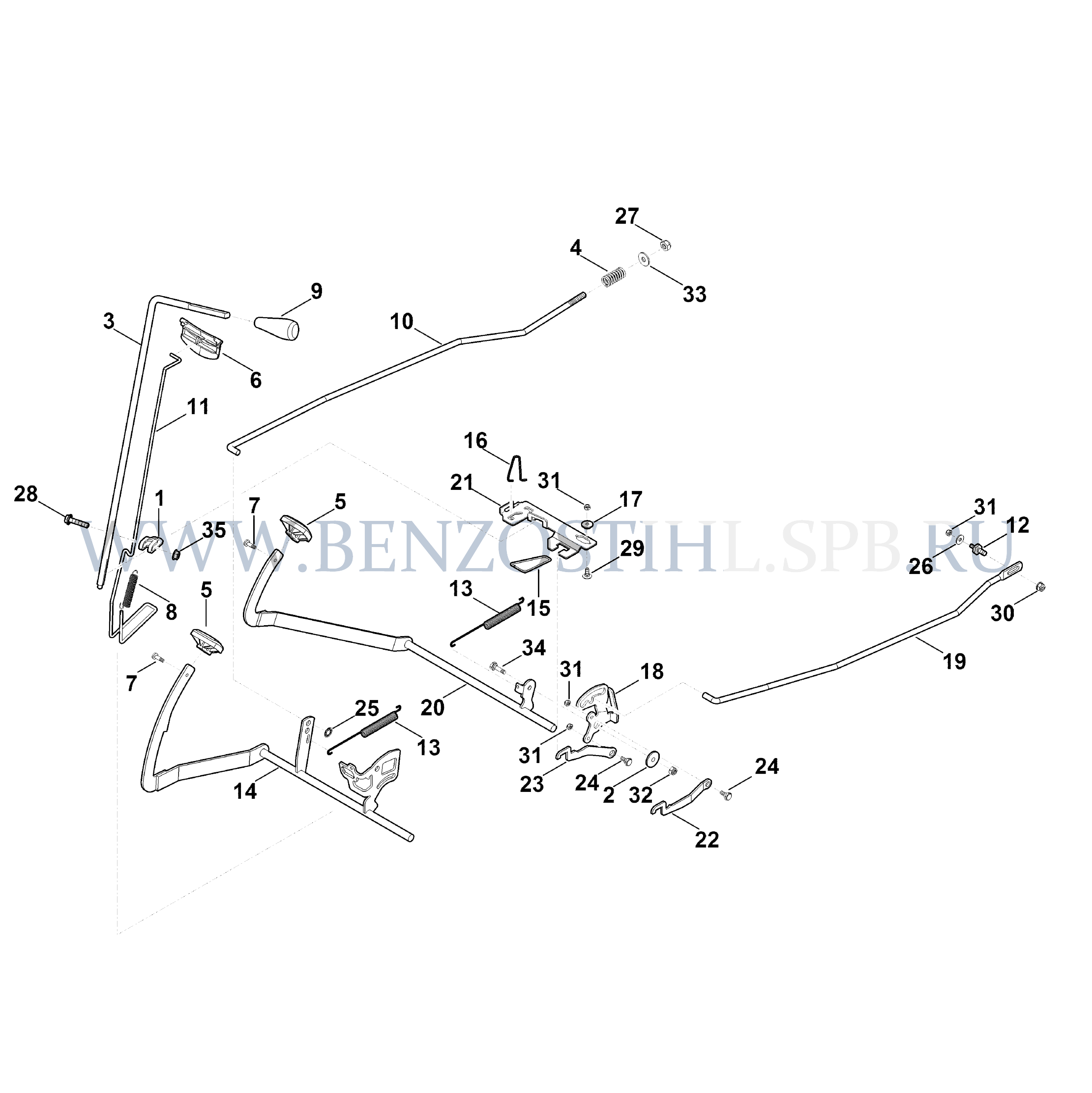 Минитрактор-косилка (Stihl) RT RT 5097.0 C Тормоз, Стояночный тормоз, Рукоятка переключения