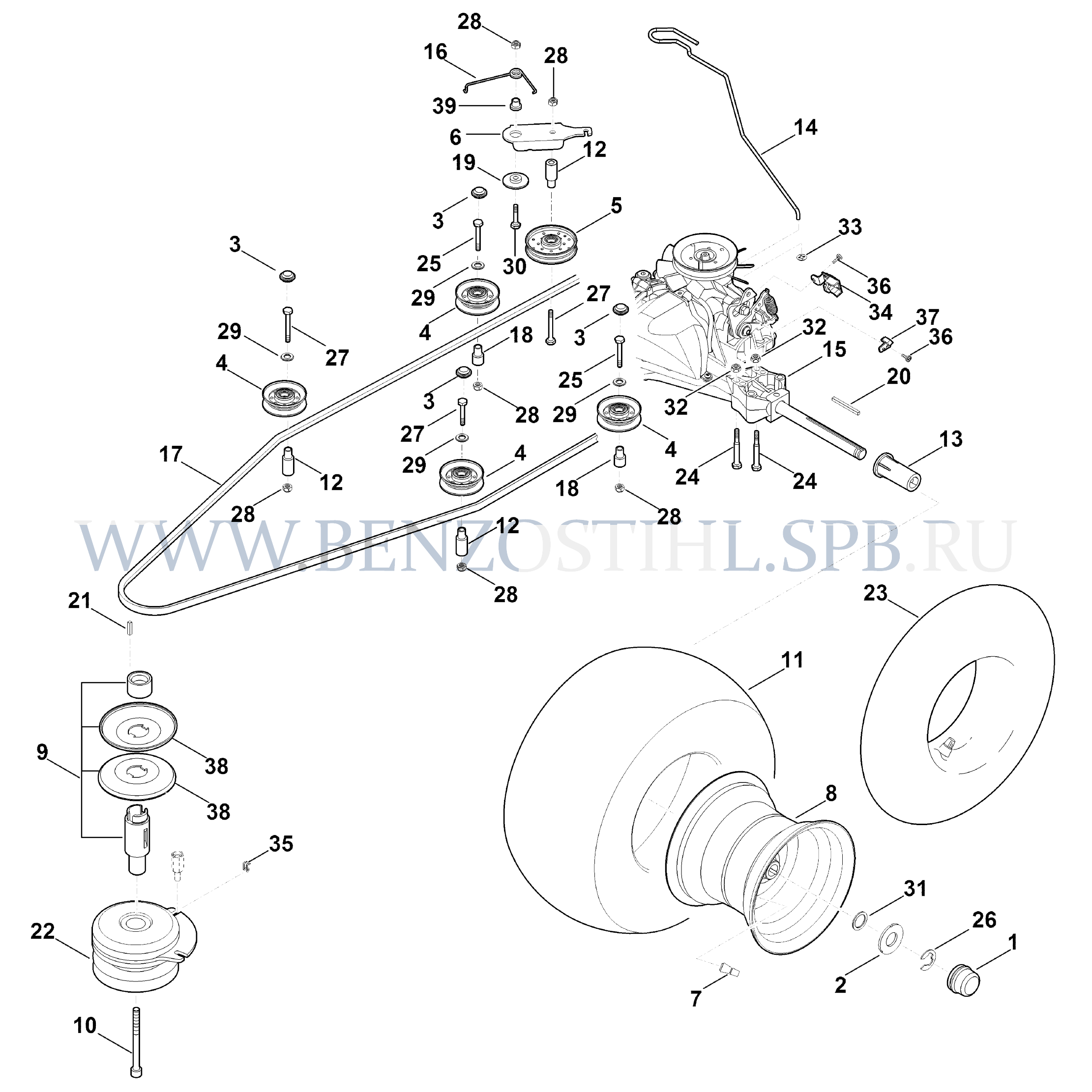 Минитрактор-косилка (Stihl) RT RT 6112.0 C Коробка передач, заднее колесо, муфта ножа