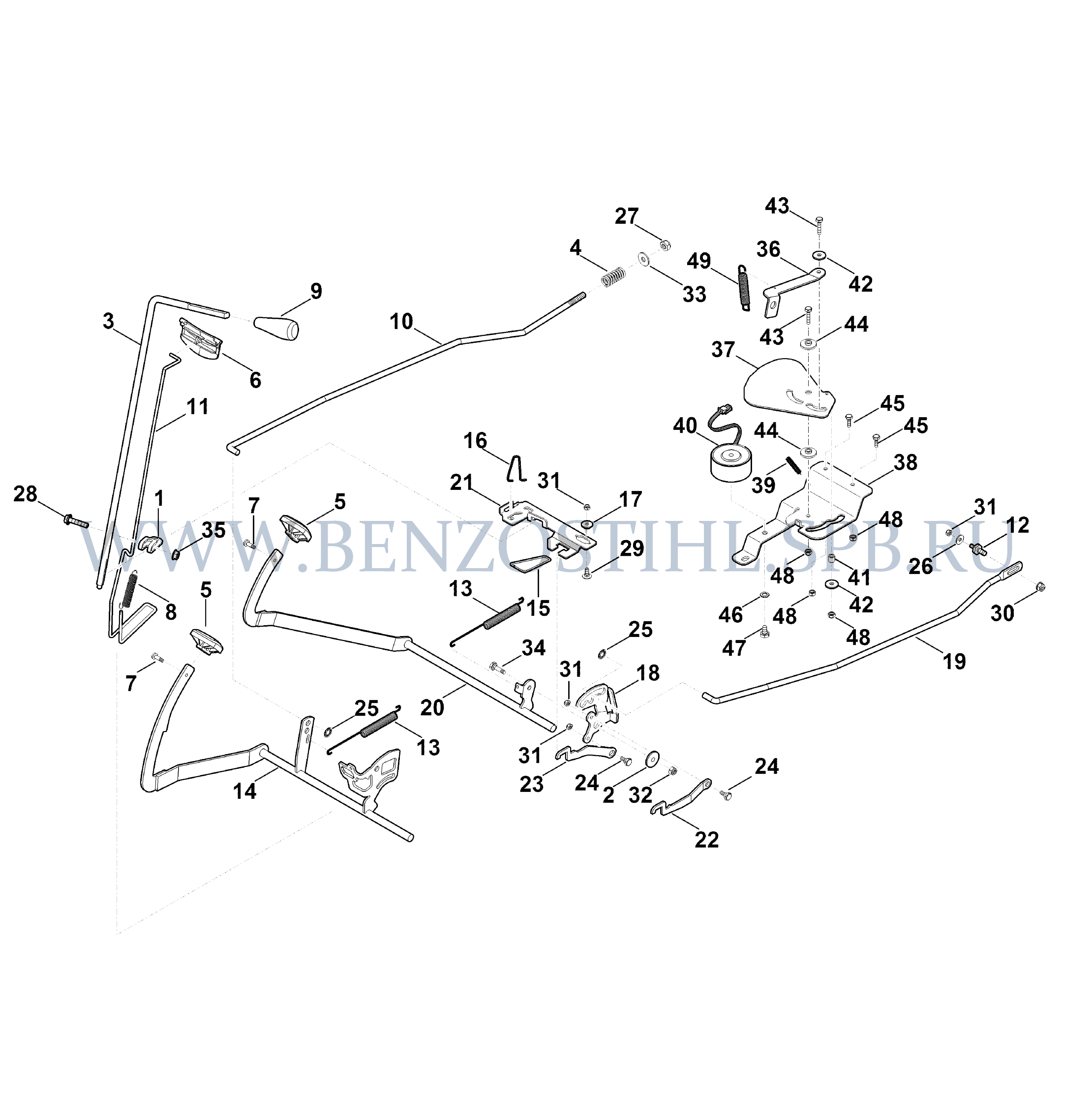 Минитрактор-косилка (Stihl) RT RT 6127.0 ZL Тормоз, стояночный тормоз, рукоятка переключения, темпомат
