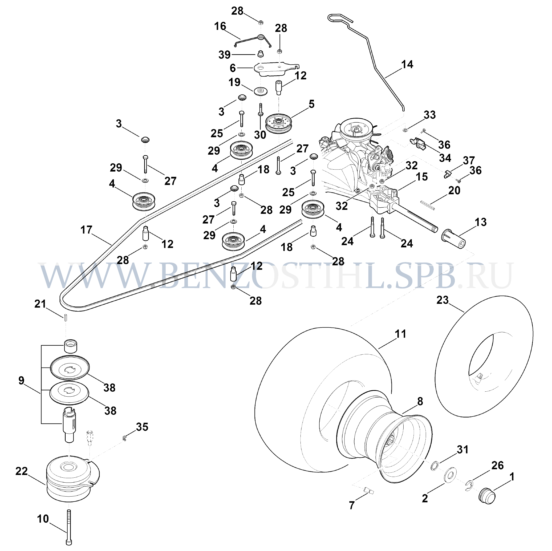 Минитрактор-косилка (Stihl) RT RT 6127.0 ZL Коробка передач, заднее колесо, муфта ножа