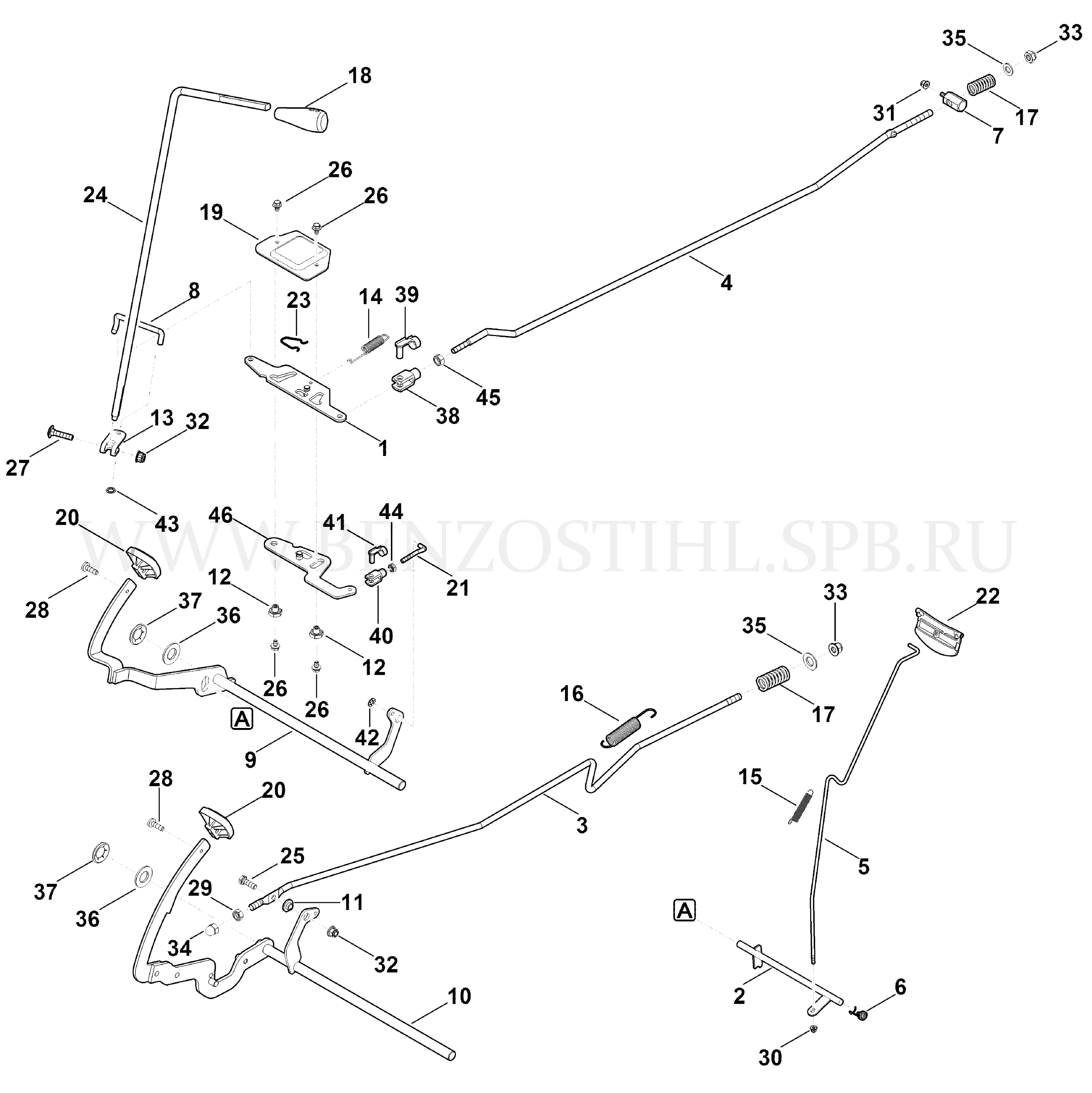 VIKING Минитрактор-косилка MR MR 4082.1 Тормоз и рукоятка переключения