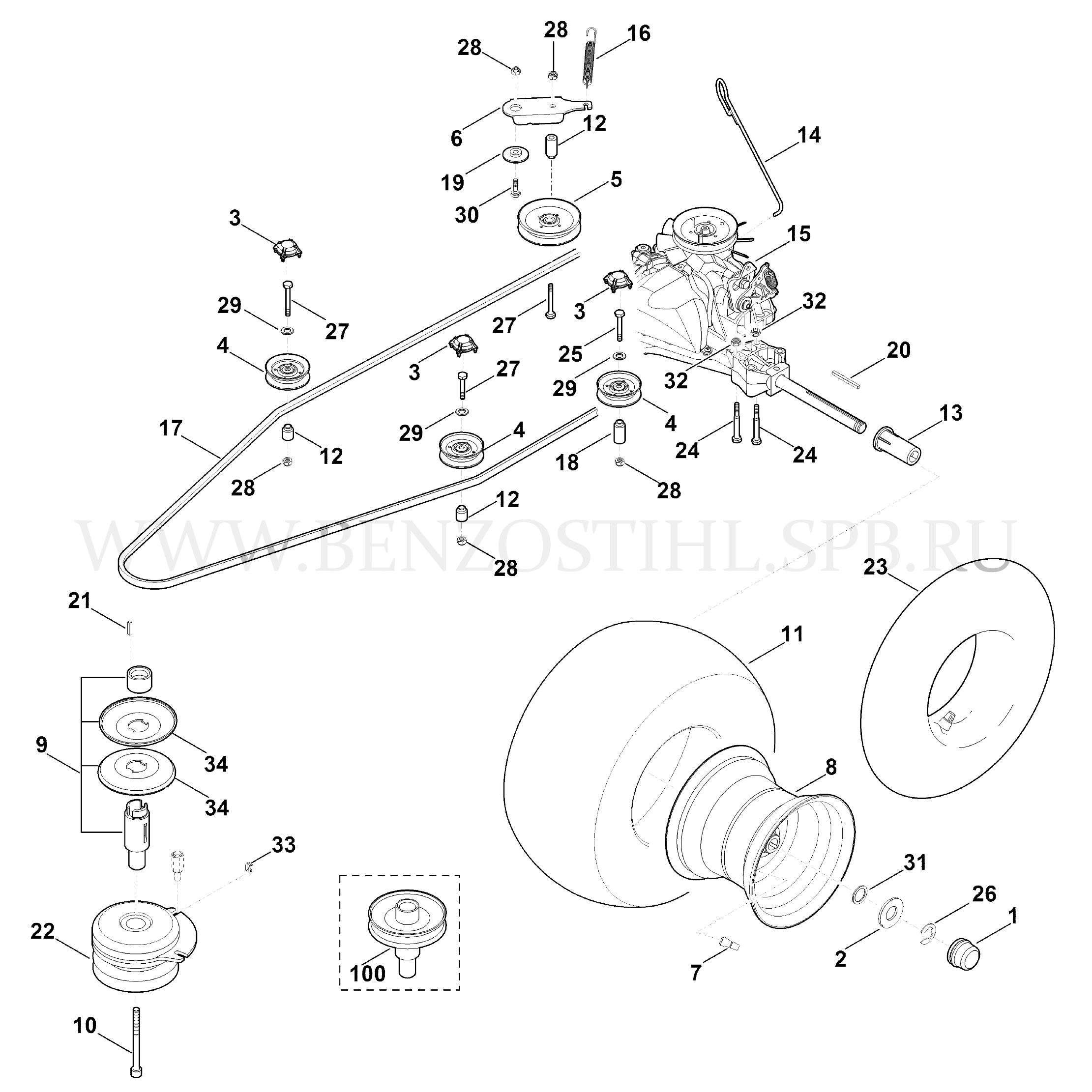 VIKING Минитрактор-косилка MT MT 4112.0 S Коробка передач, заднее колесо, муфта ножа