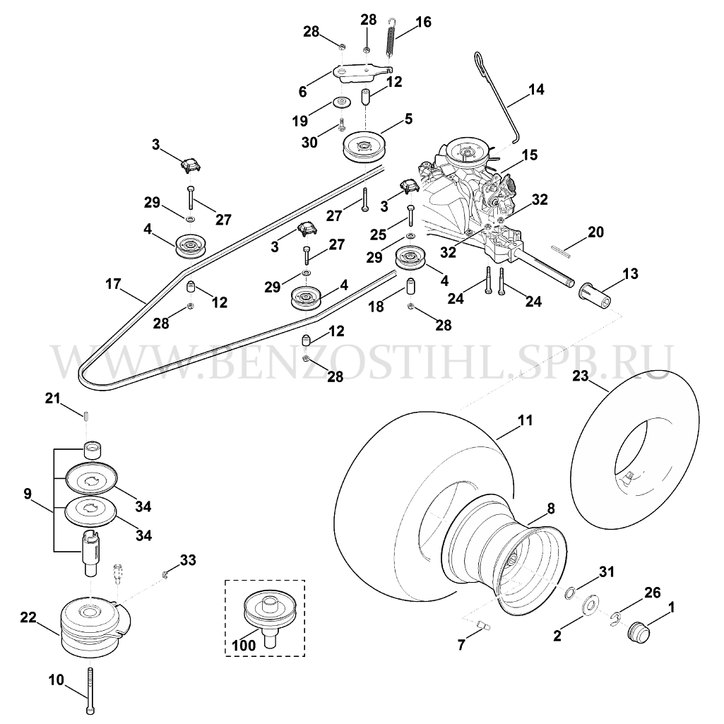 VIKING  Минитрактор-косилка  MT  MT 4112.0 S  Коробка передач, заднее колесо, муфта ножа