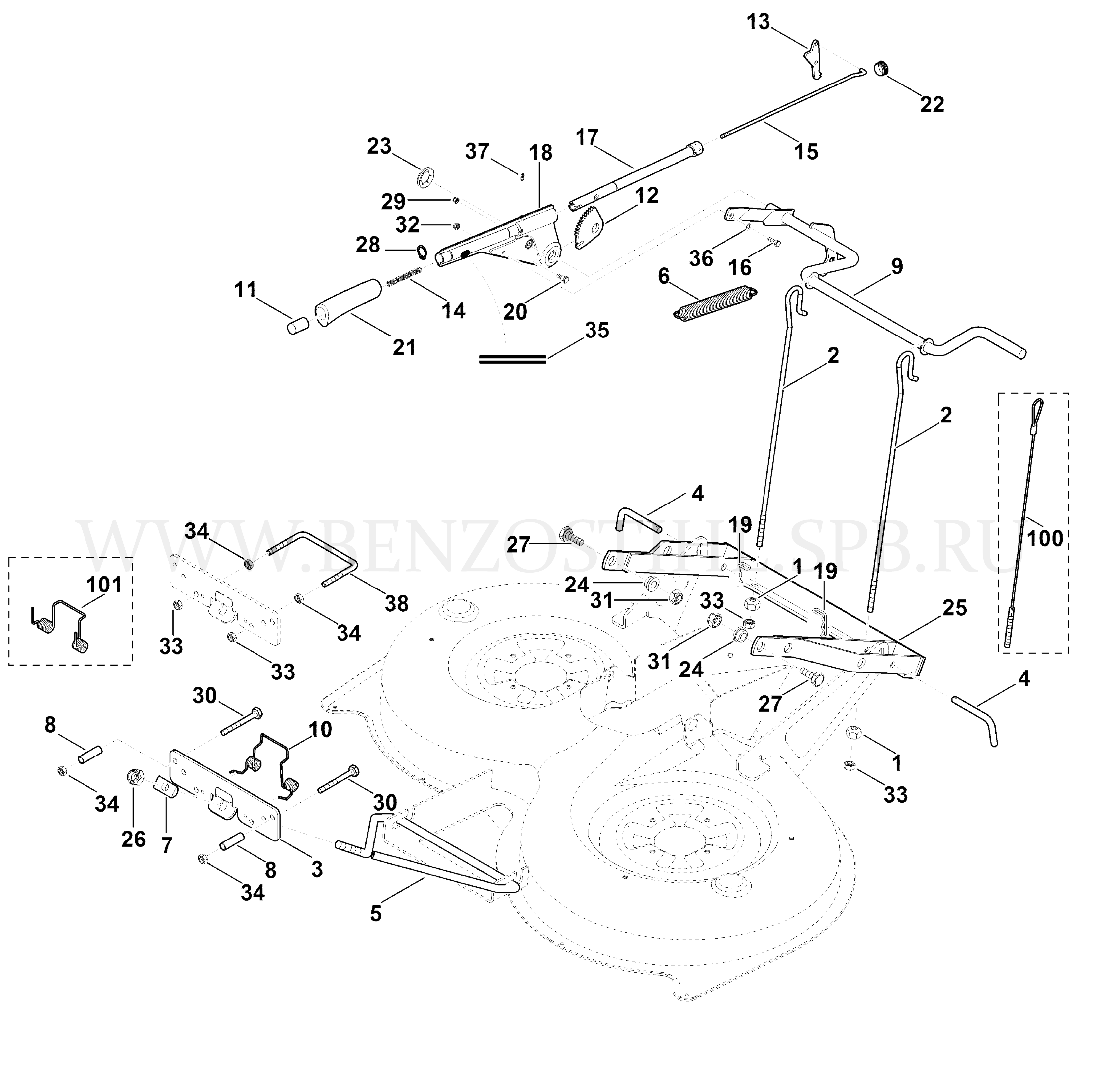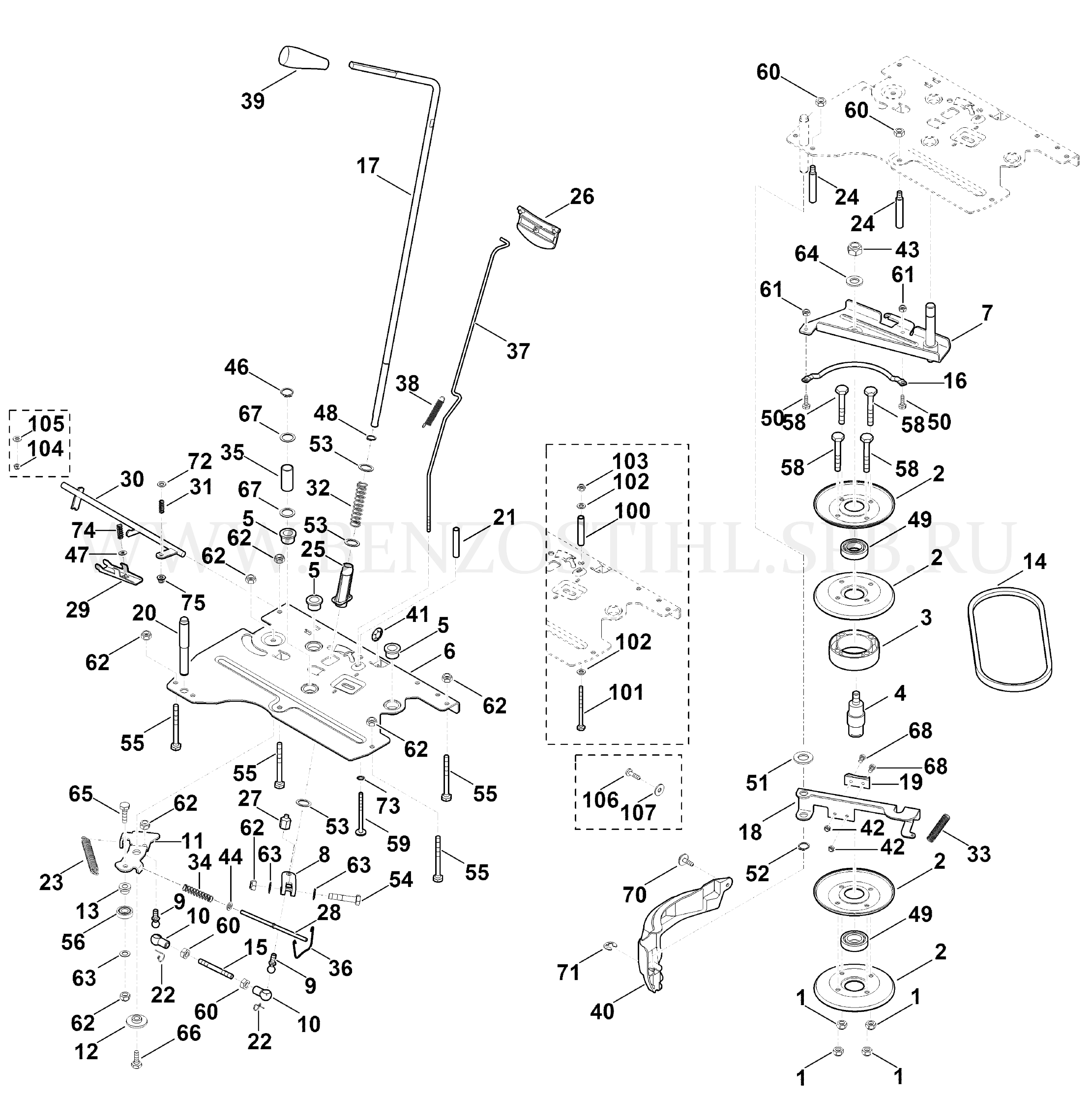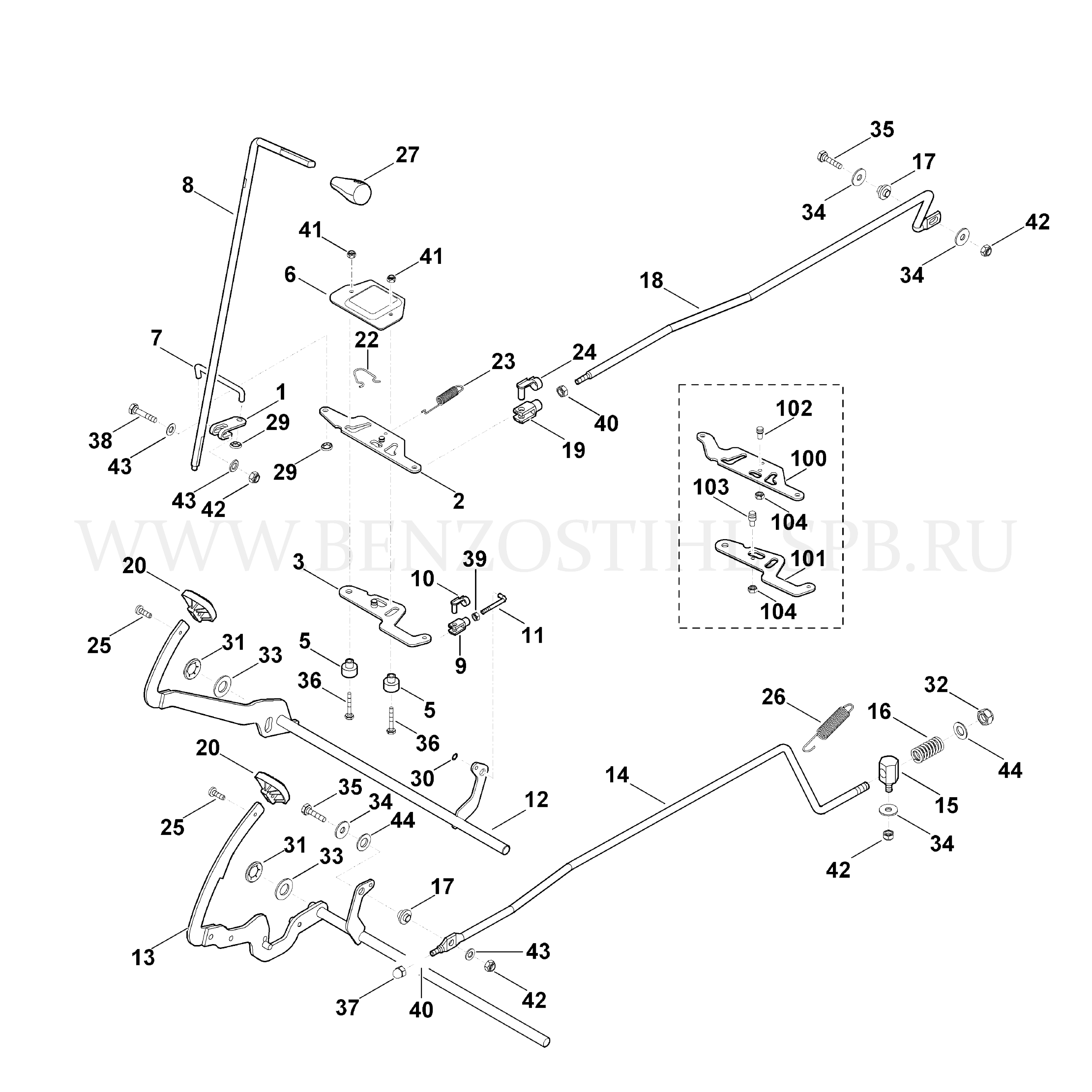 VIKING Минитрактор-косилка MT MT 5097.0 Муфта ножа, стояночный тормоз