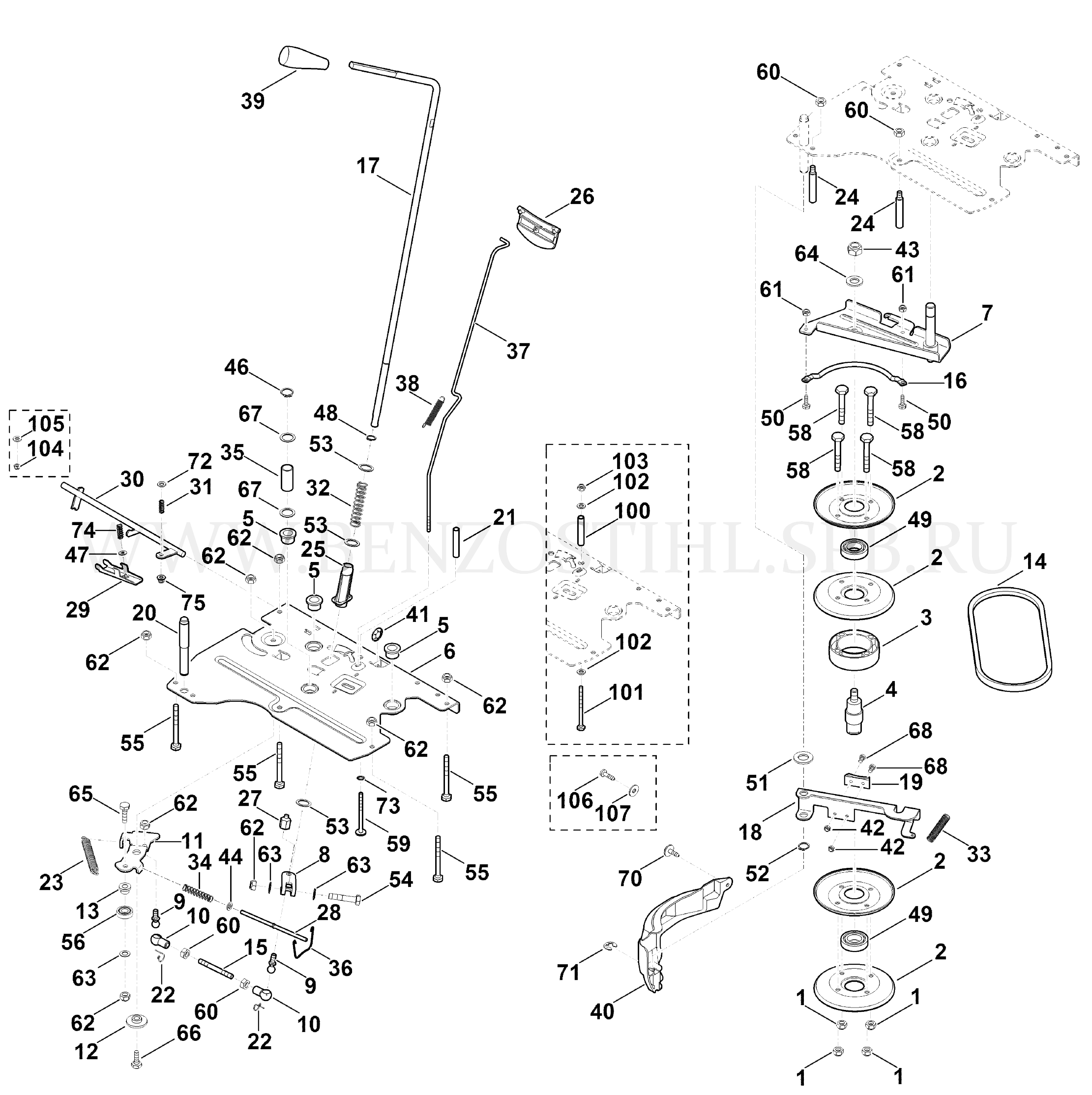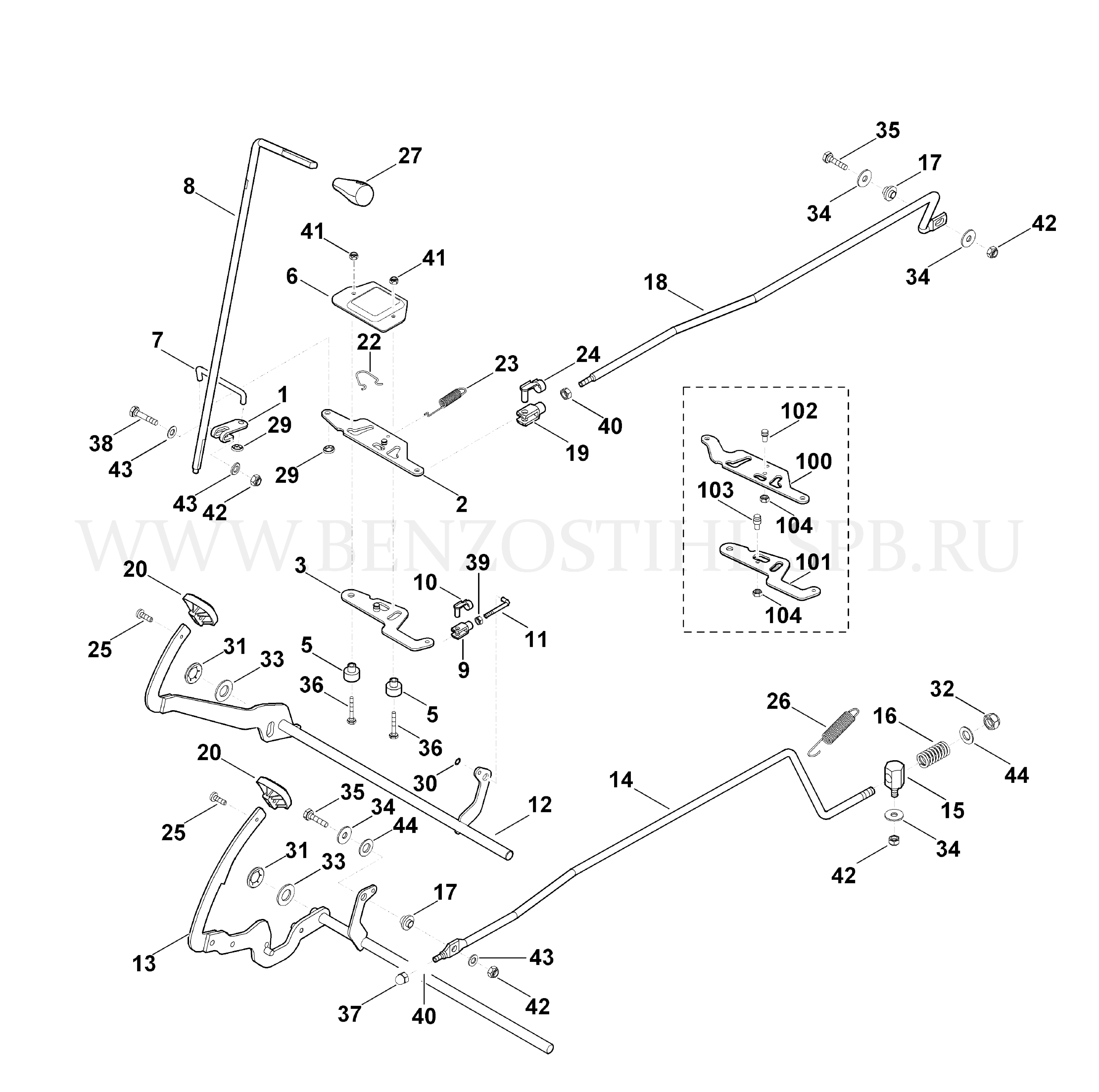 VIKING Минитрактор-косилка MT MT 6112.0 C Тормоз и рукоятка переключения