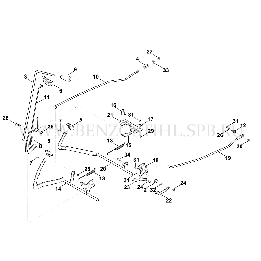 VIKING  Минитрактор-косилка  MT  MT 6112.1 C  Тормоз, Стояночный тормоз, Рукоятка переключения