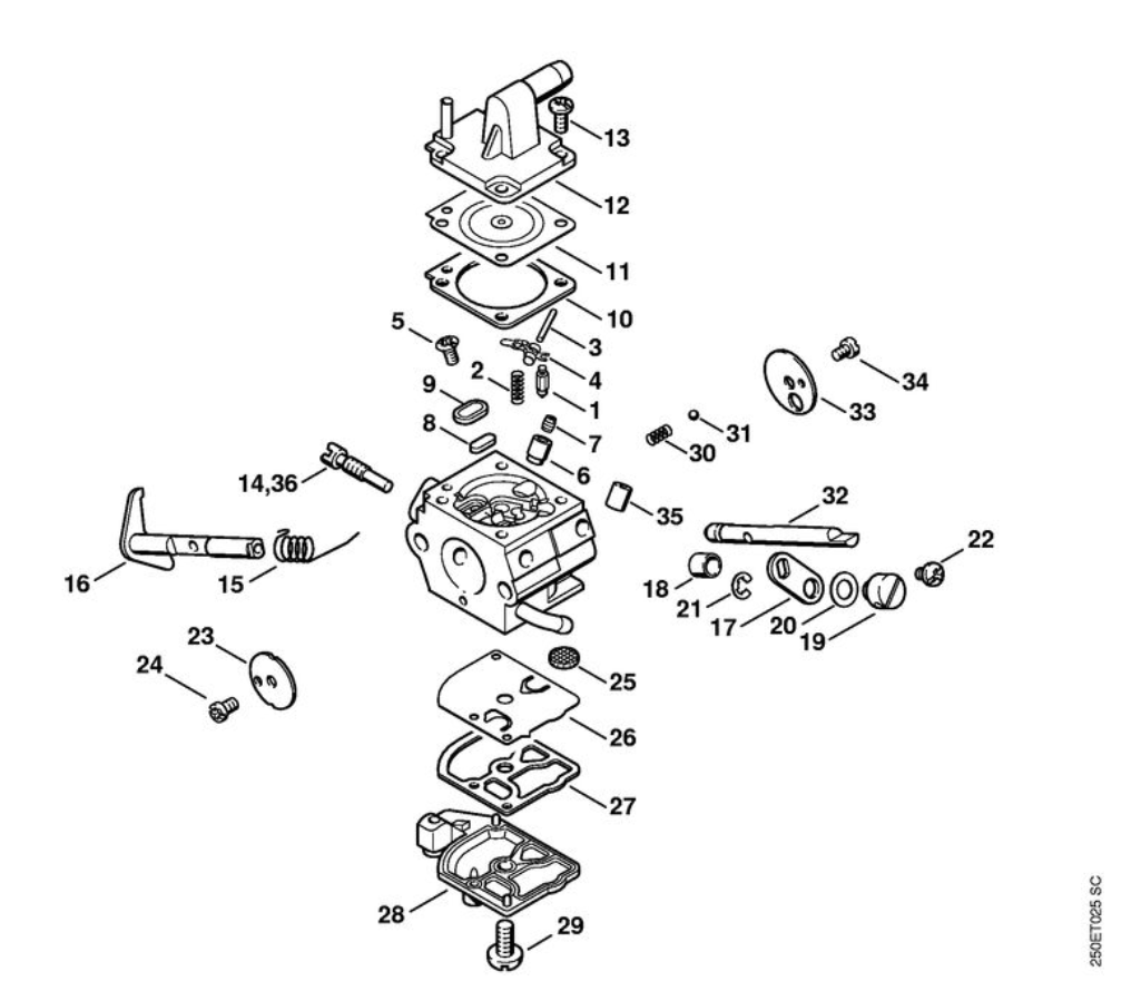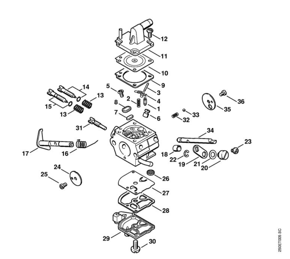 12 | Карбюратор C1Q-S35 (19.98) | FS 120 | Триммер STIHL | Запчасти по России | Сервисное обслуживание