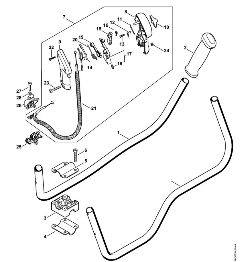 14 | Трубчатая рукоятка с двумя ручками, Рукоятка управления | FS 120 | Триммер STIHL | Запчасти по России | Сервисное обслуживание