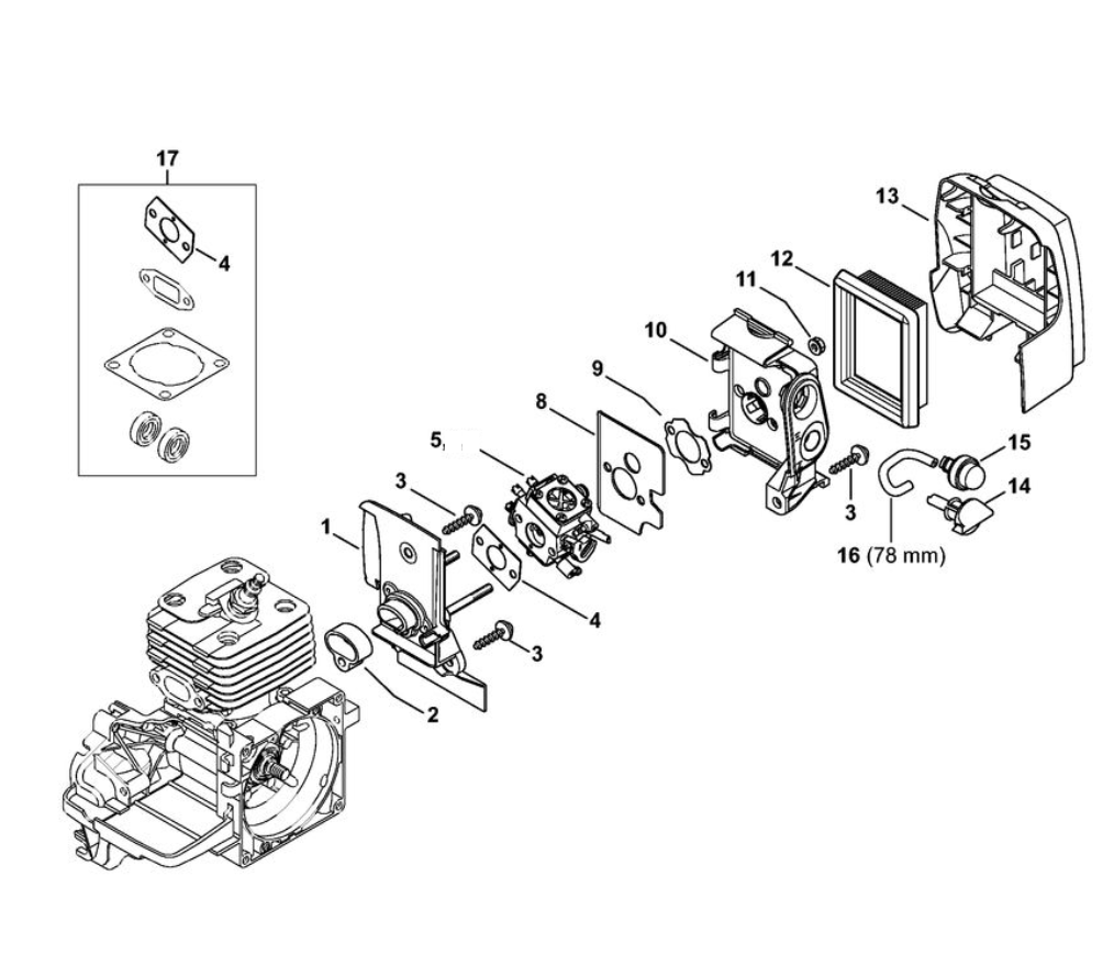1 | Картер - Цилиндр - Поршень | FS 120 | Триммер STIHL | Запчасти по России | Сервисное обслуживание