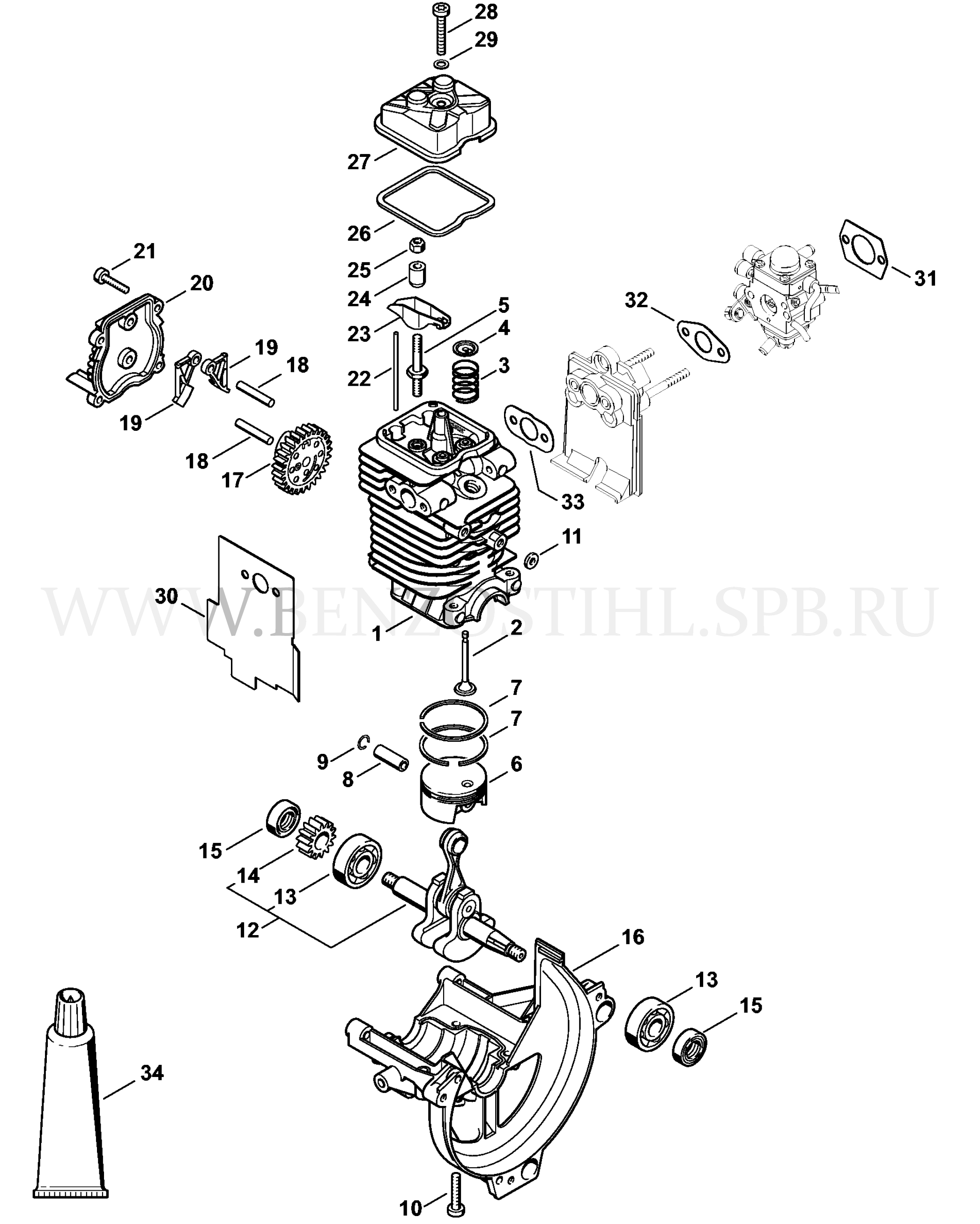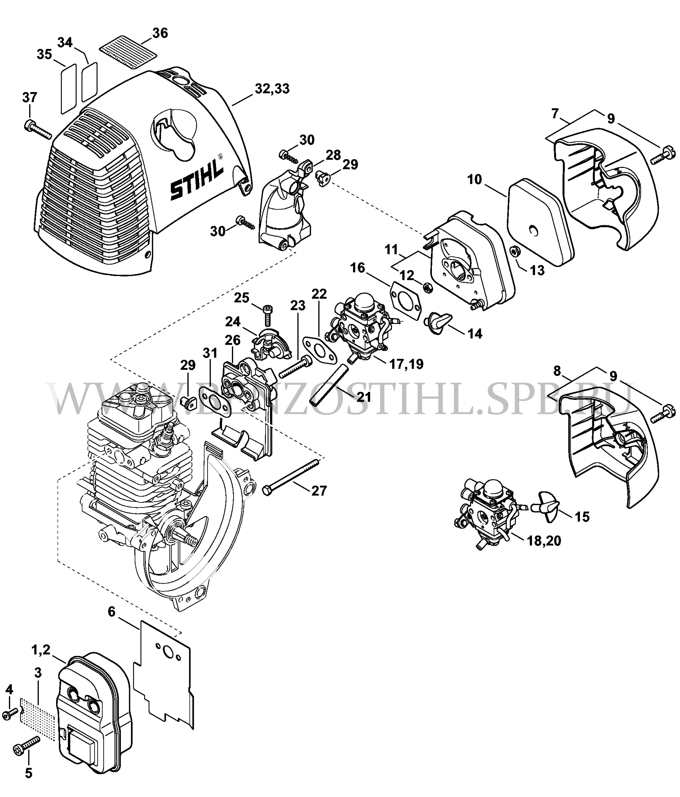 FS 130 Карбюратор - Глушитель - Воздушный фильтр