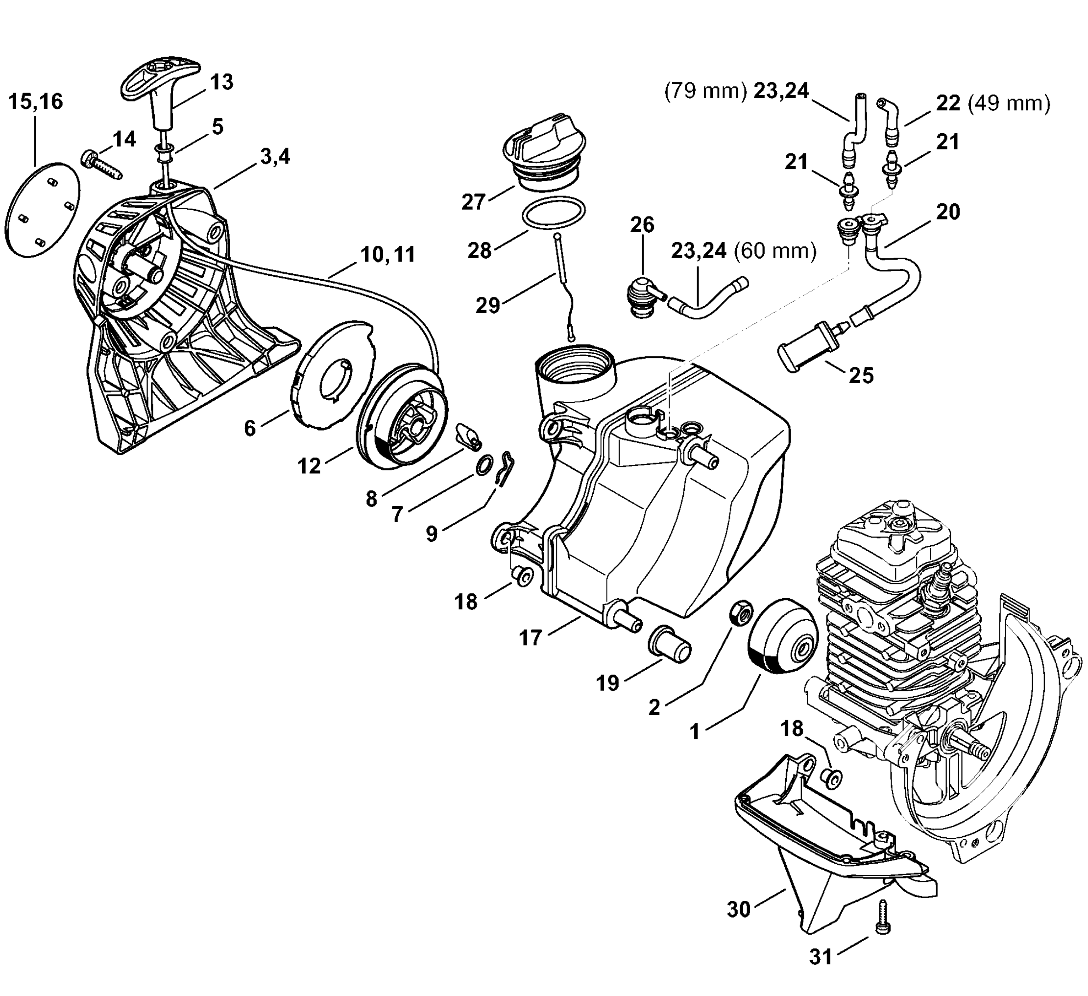 FS 131 Пусковое устройство, Топливный бак