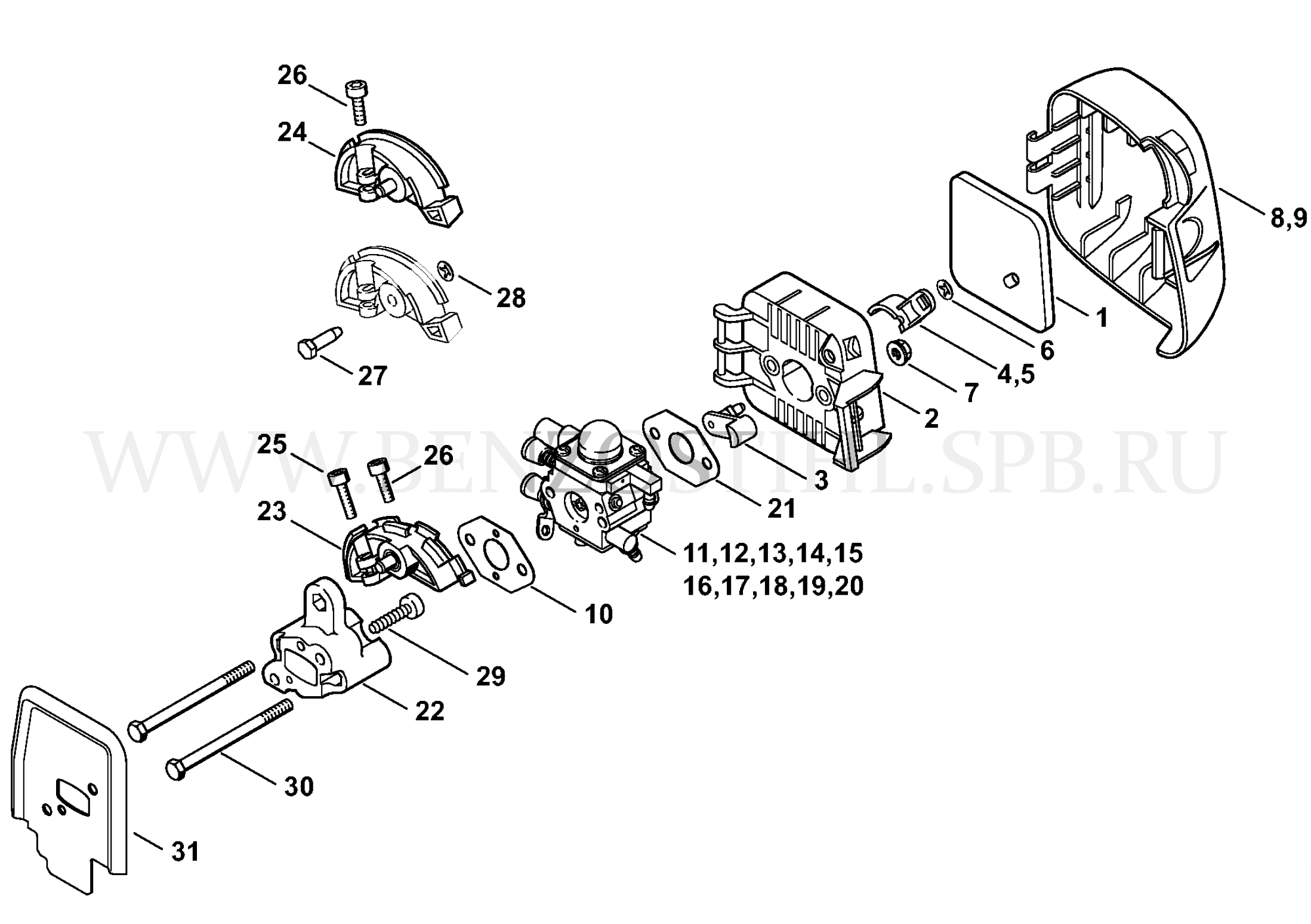 FS 45 C Карбюратор - Воздушный фильтр - Промежуточный фланец